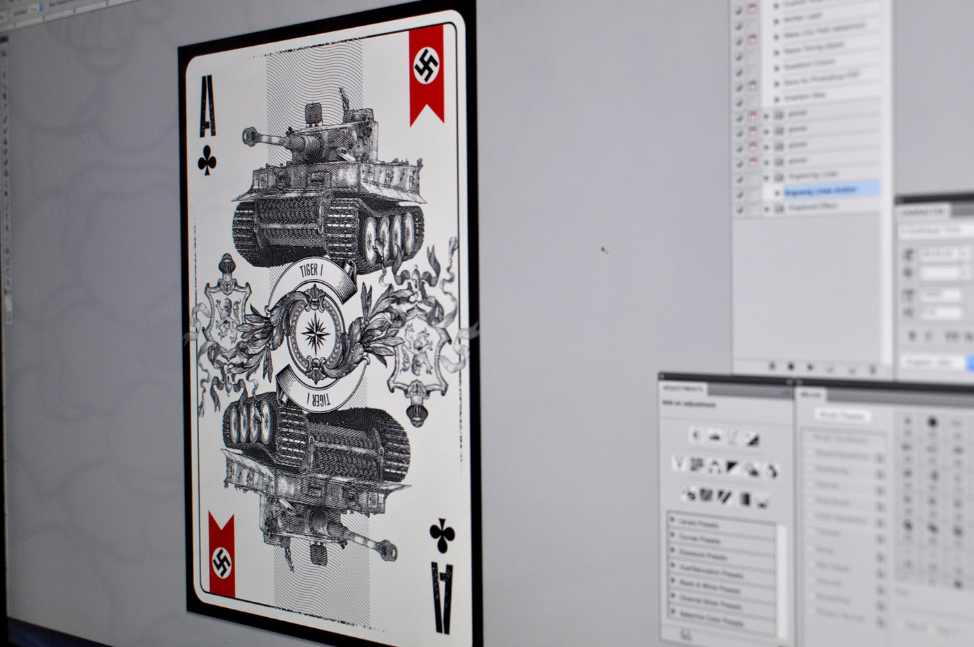 As for the nazi logo, I wanted to use the bands of the armies, but the details on this bands are too tiny and they won't look good on the cards.