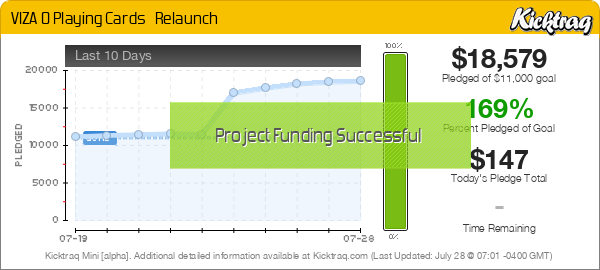 Some decks take off and fund really quickly - others climb slowly... I haven't figured out the KS formula of what works, though am hopeful that VIZAĜO is a late bloomer and will cross the funding goal soon.