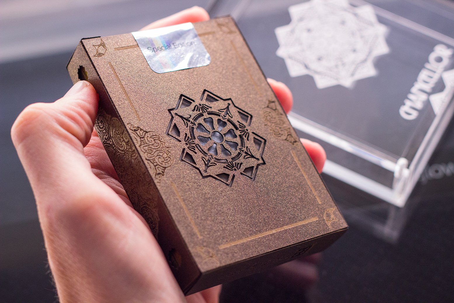 Well, I just received my patron backer carat case. I like it. Now, if someone would like to donate a nice Aurum deck for me to put in the carat case, I would be much obliged