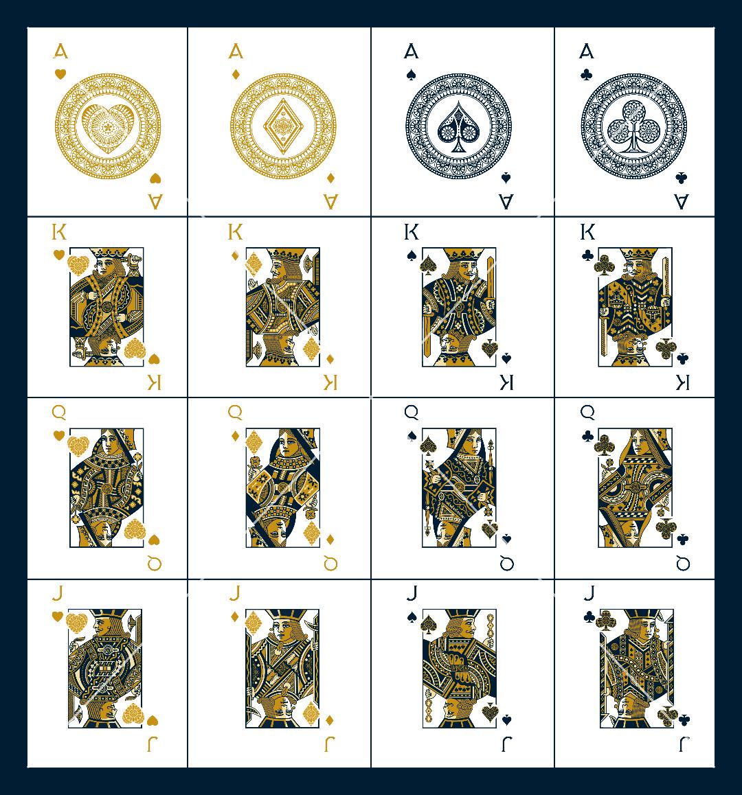 These look really nice with all the detail put into these back, ace, and court card designs, but all that detail feels reminiscent of Theory 11 cards. Not to say that it's bad, but a bit overwhelming with all of the circles and lines.
