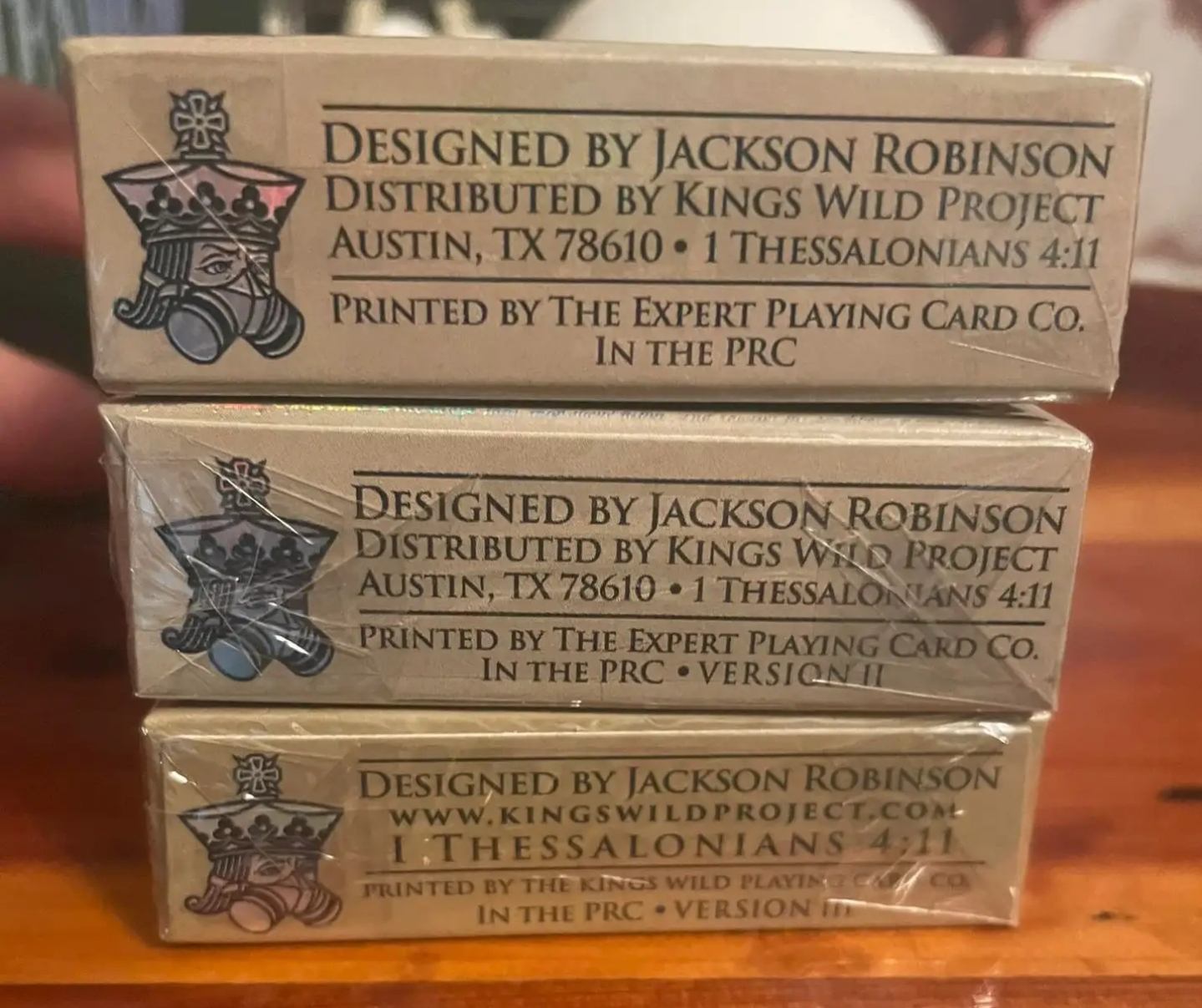 I just got the v.3 of the Holographic Legal Tender that they just released. It lists on the bottom that it's printed by Kings Wild Playing Card Co. " in the PRC". So that confirms that "Kings Wild Playing Card Co." as a printer is just the branding name they're now using for the mystery PRC printer they've been using.