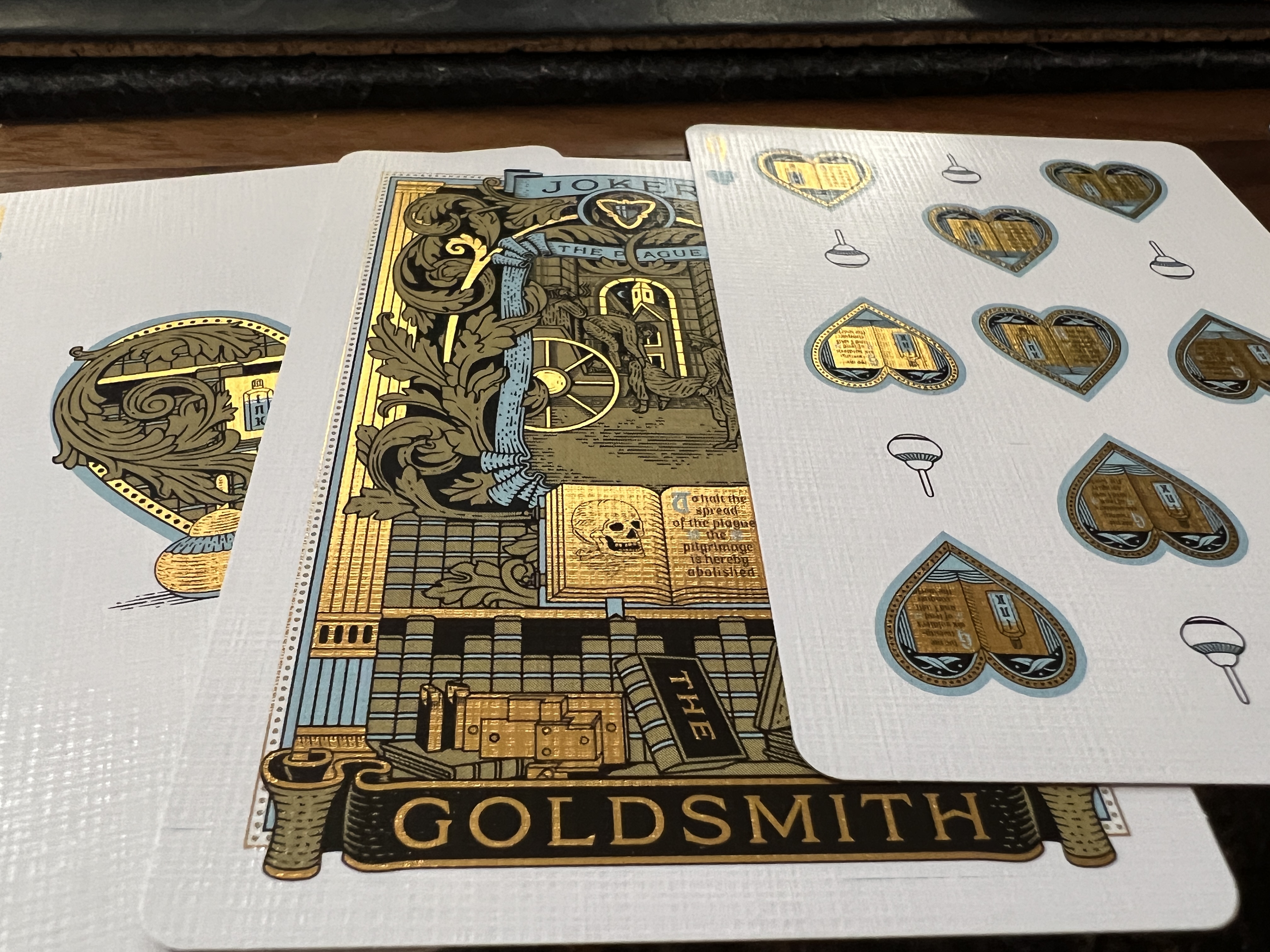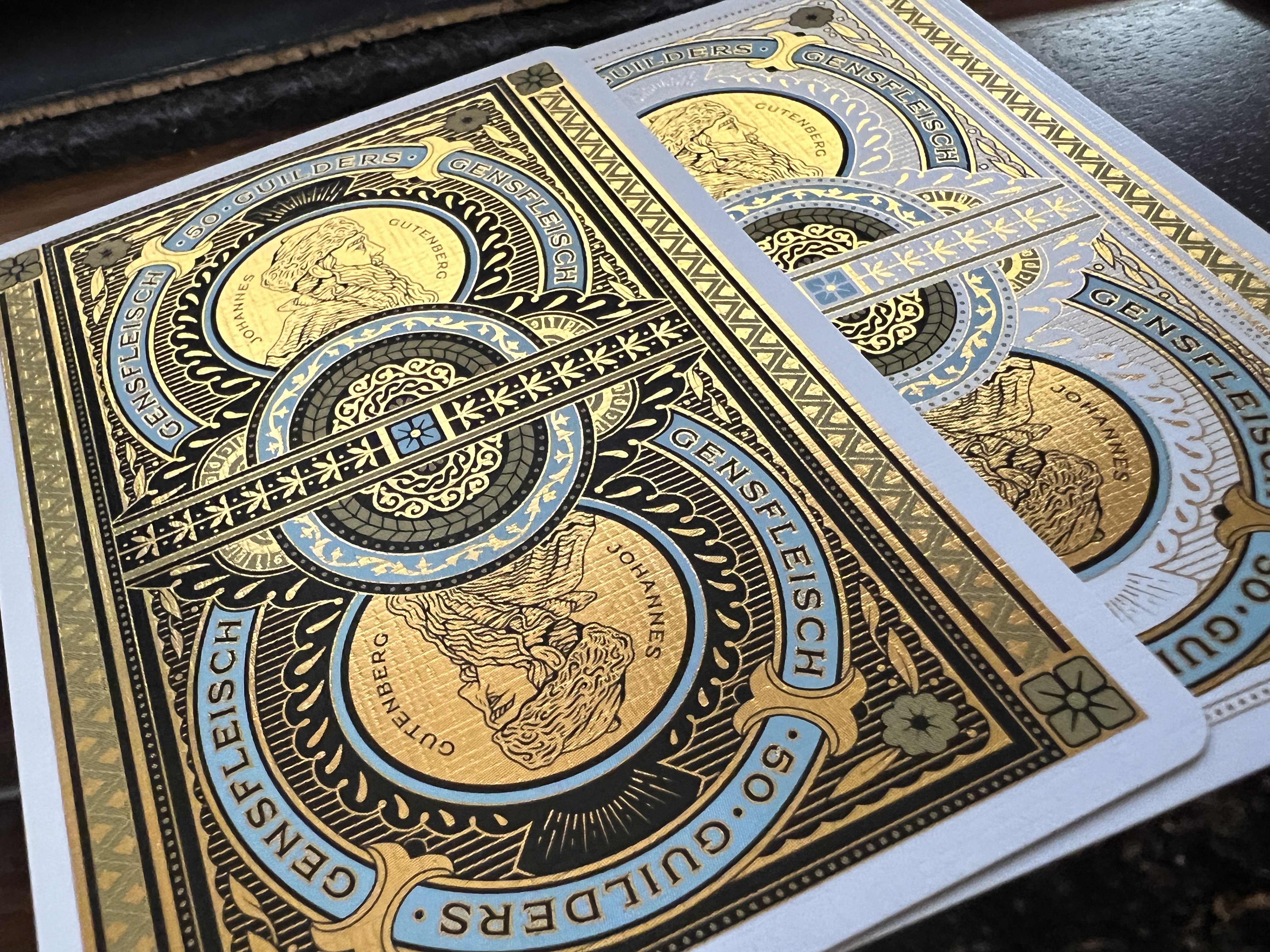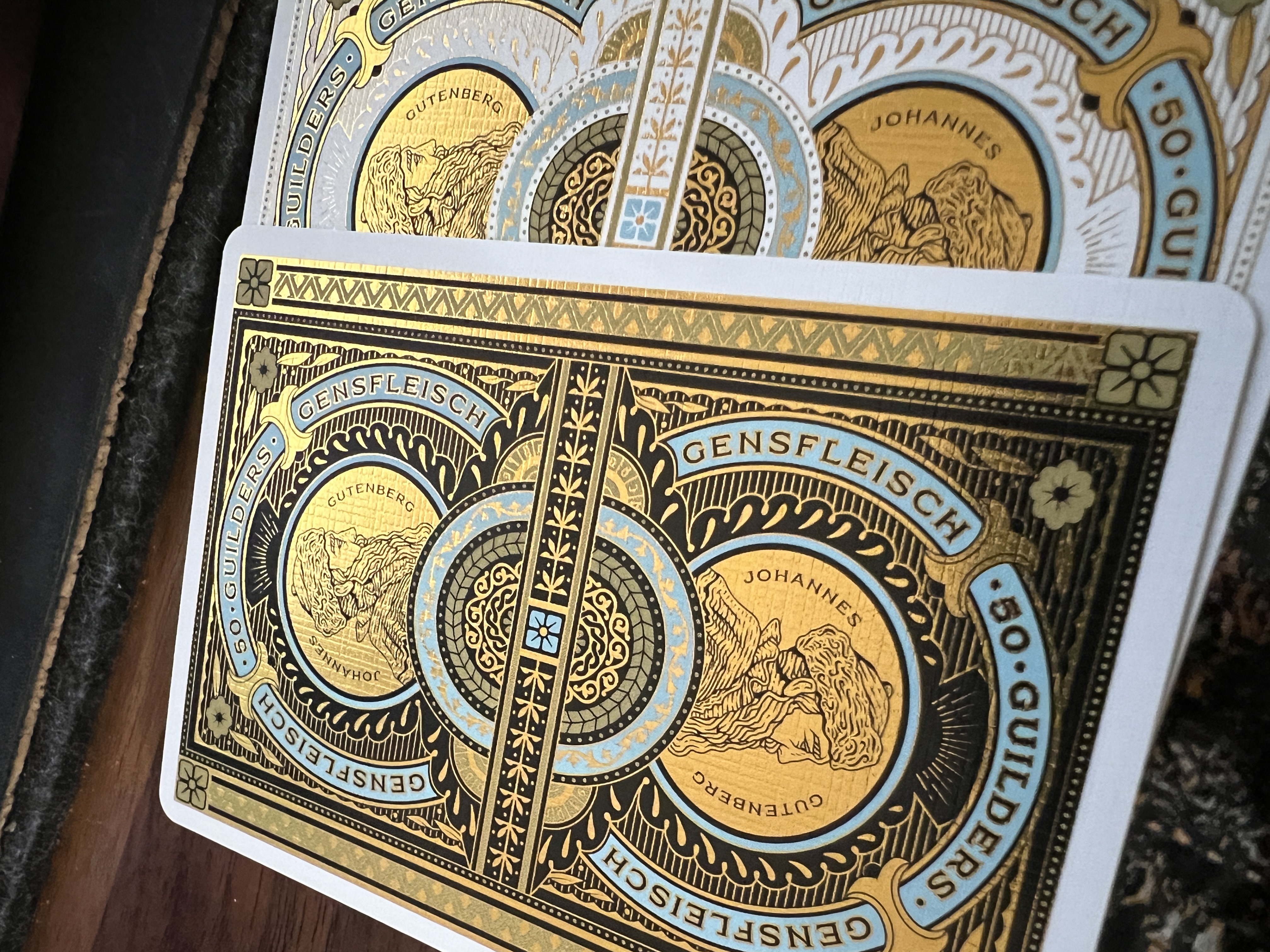Evidently, the middle row has two decks stacked on top of each other. Odd choice. Regardless, neither deck has gilding, and the carat case will be walnut treated with linseed oil--like Lorenzo's patreon case. ANd of course no coin is included on T11's set.