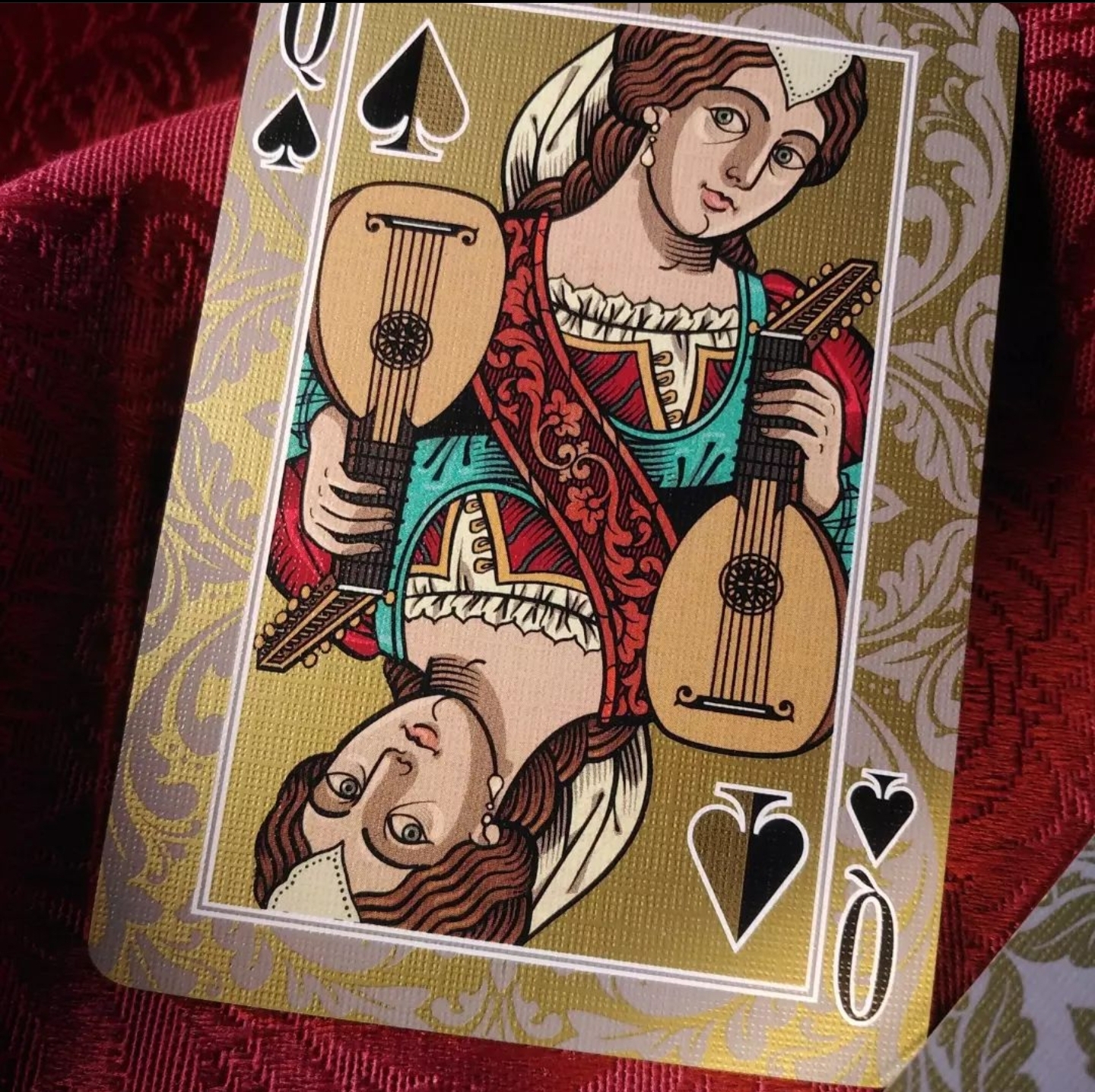 About Golden Rule, now that I've had time to look them over, I really don't see what the fuss is about the discrepancy in the level of detail. At first glance, the Queen of Hearts was the one that gave me pause, her face being so unblemished, but it's very easy to imagine the universe or time period in which this deck is set being one in which kings and queens have a giant age gap. That, to me, sufficiently explains all. It's not only detail, it's colors as well, as the kings look more pale and grey when compared to their better halves.
