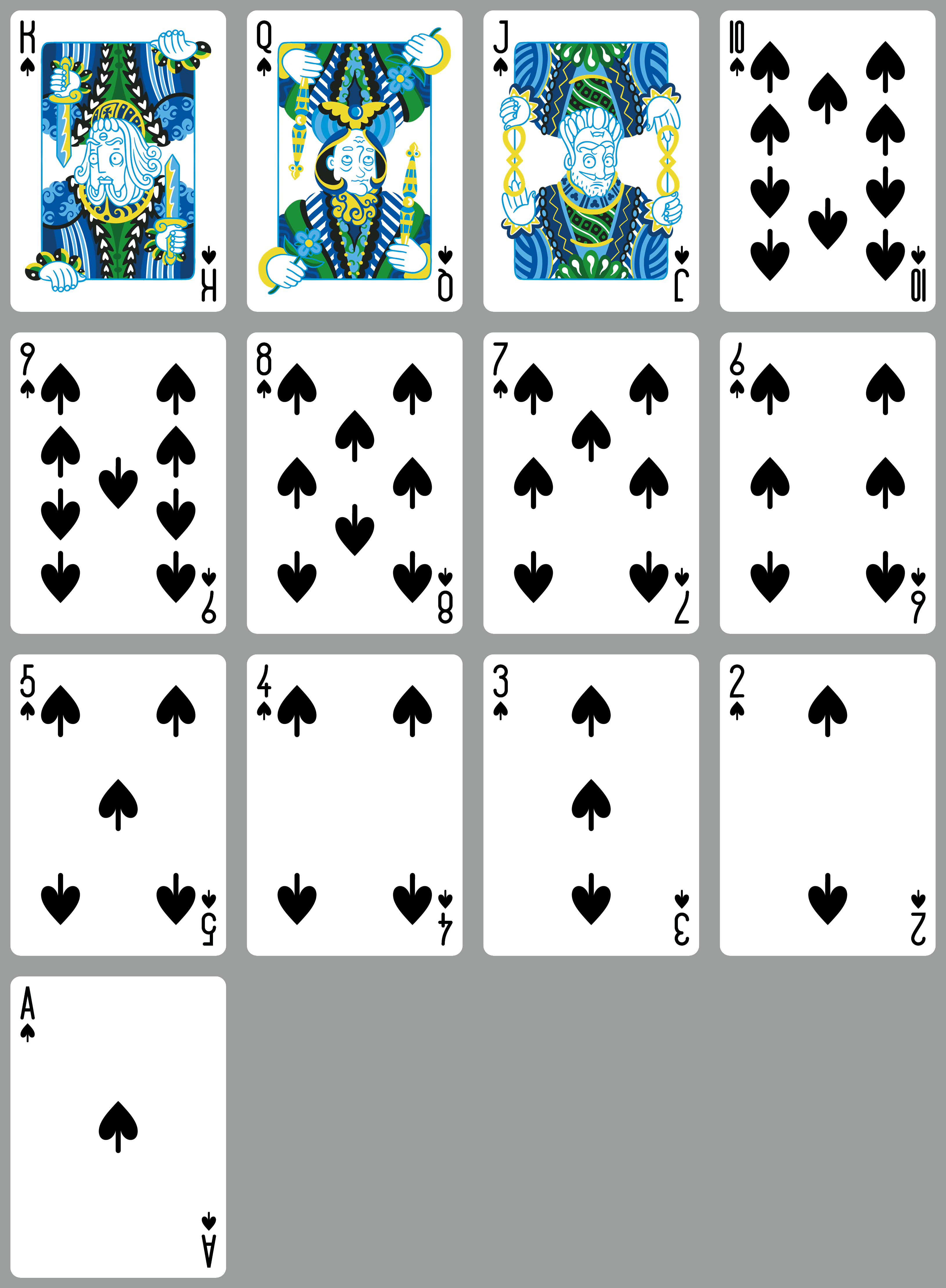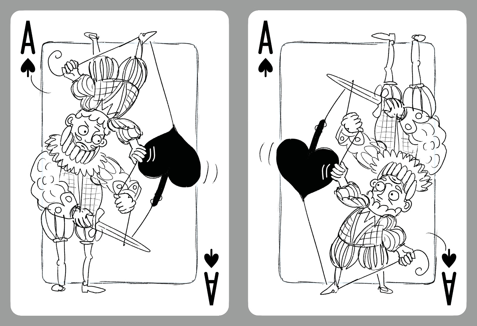 • Regarding the aces, I would love to see something interesting done to the ace of spades, if it can fit with the theme of ambiguous images. The other aces would be a bonus.