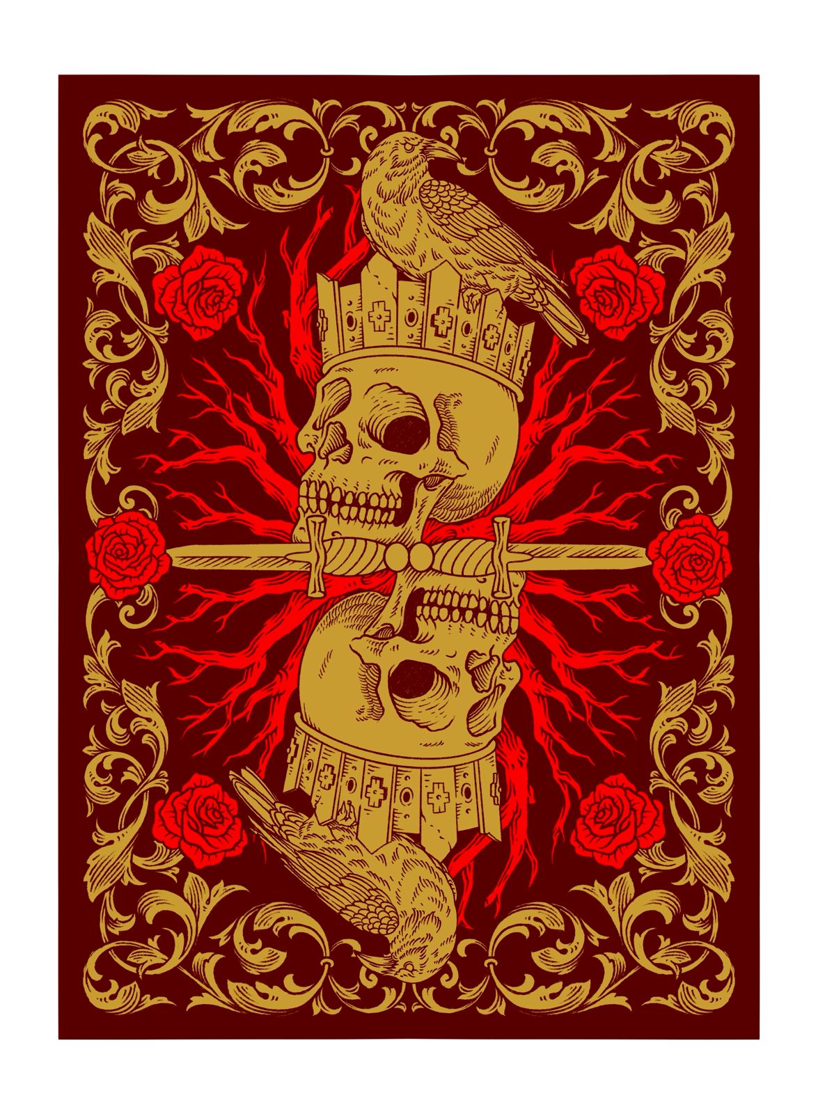 Continuing with adding the themes and concepts of Macbeth to our playing cards, we designed custom pips that simplify the suits' meaning.