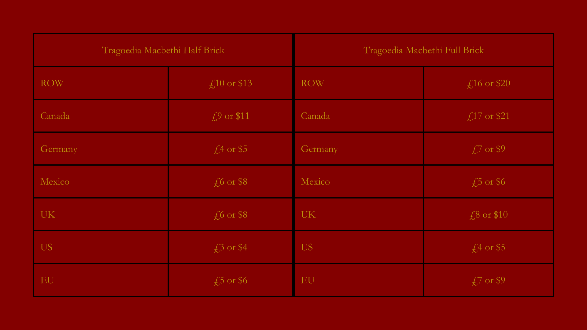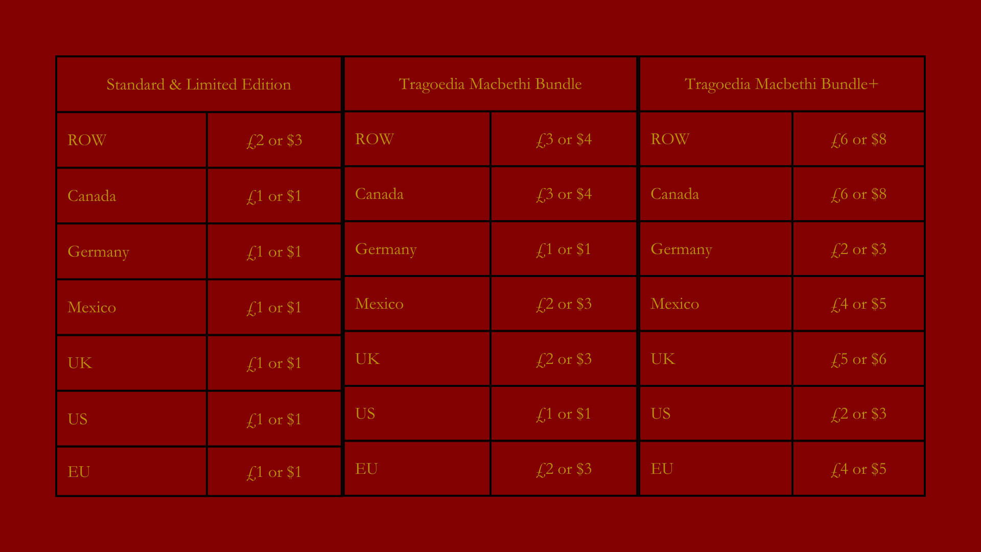 I've changed the shipping rates for playing card add-ons, such as the Standard & Limited Edition add-ons, the Bundle, Bundle+, Half Brick and Full Brick.