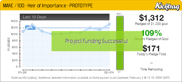 <iframe src="https://www.kickstarter.com/projects/1431121659/make-100-heir-of-importance-prototype/widget/card.html?v=2" width="220" height="420" frameborder="0" scrolling="no"></iframe>[b][/b]- kevork