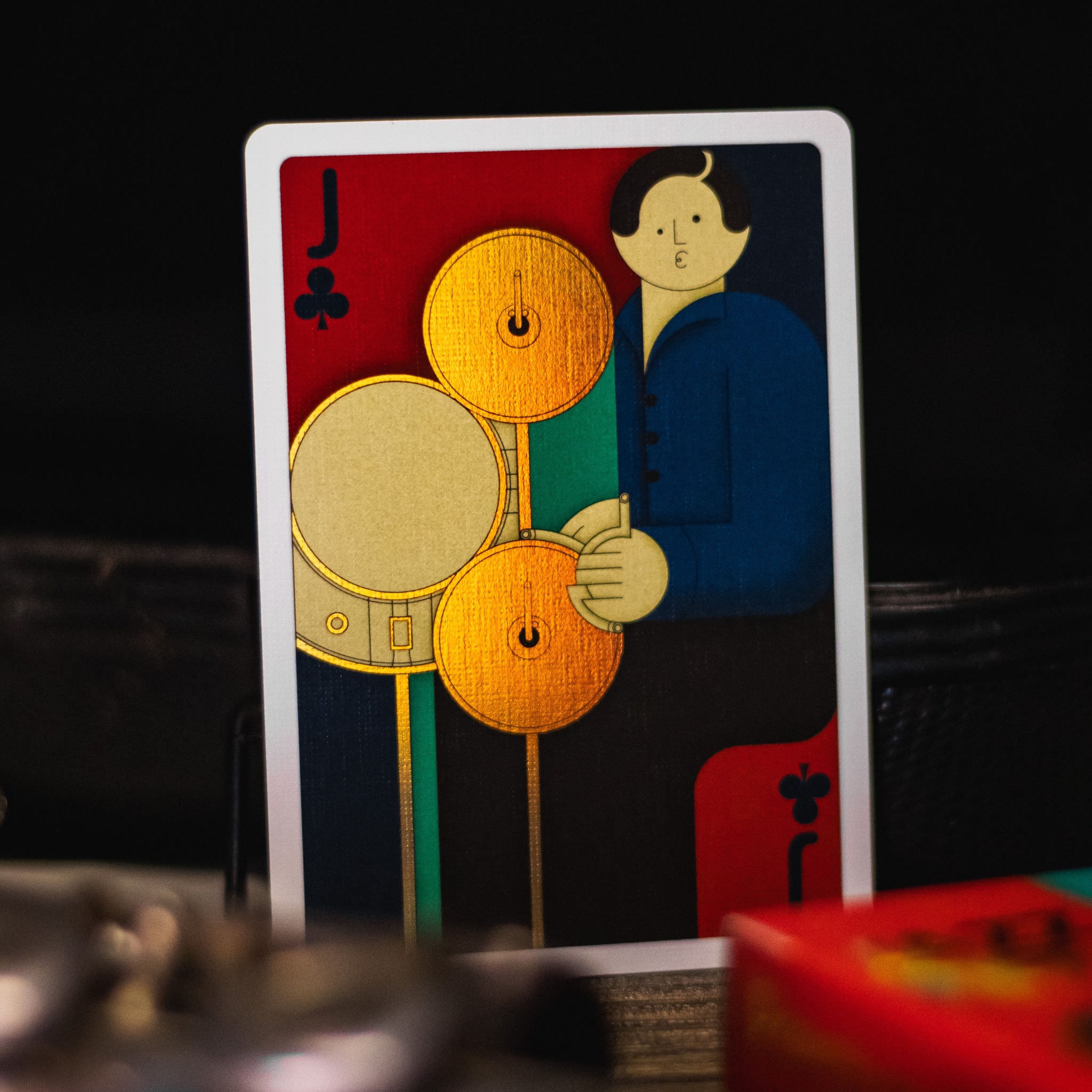 Chris Hage wrote:The Jack of Clubs in the Jazz Riff playing cards deck features Gene Krupa playing the drums, showcasing his drumming influence in the world of jazz. The design uses simple shapes and a limited color palette, employing basic geometry in intriguing combinations to capture the essence of jazz music in a non-traditional and beautiful way.