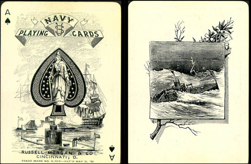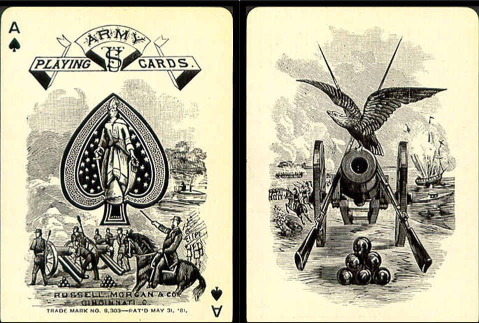 US3b & US4b both in a satin lined leatherette case. Reprints of the 1881 decks with a new back so they can't be passed off as the original. Still worth $100 each at least, they were worth $50 each in 2004 without the box and OG insert.