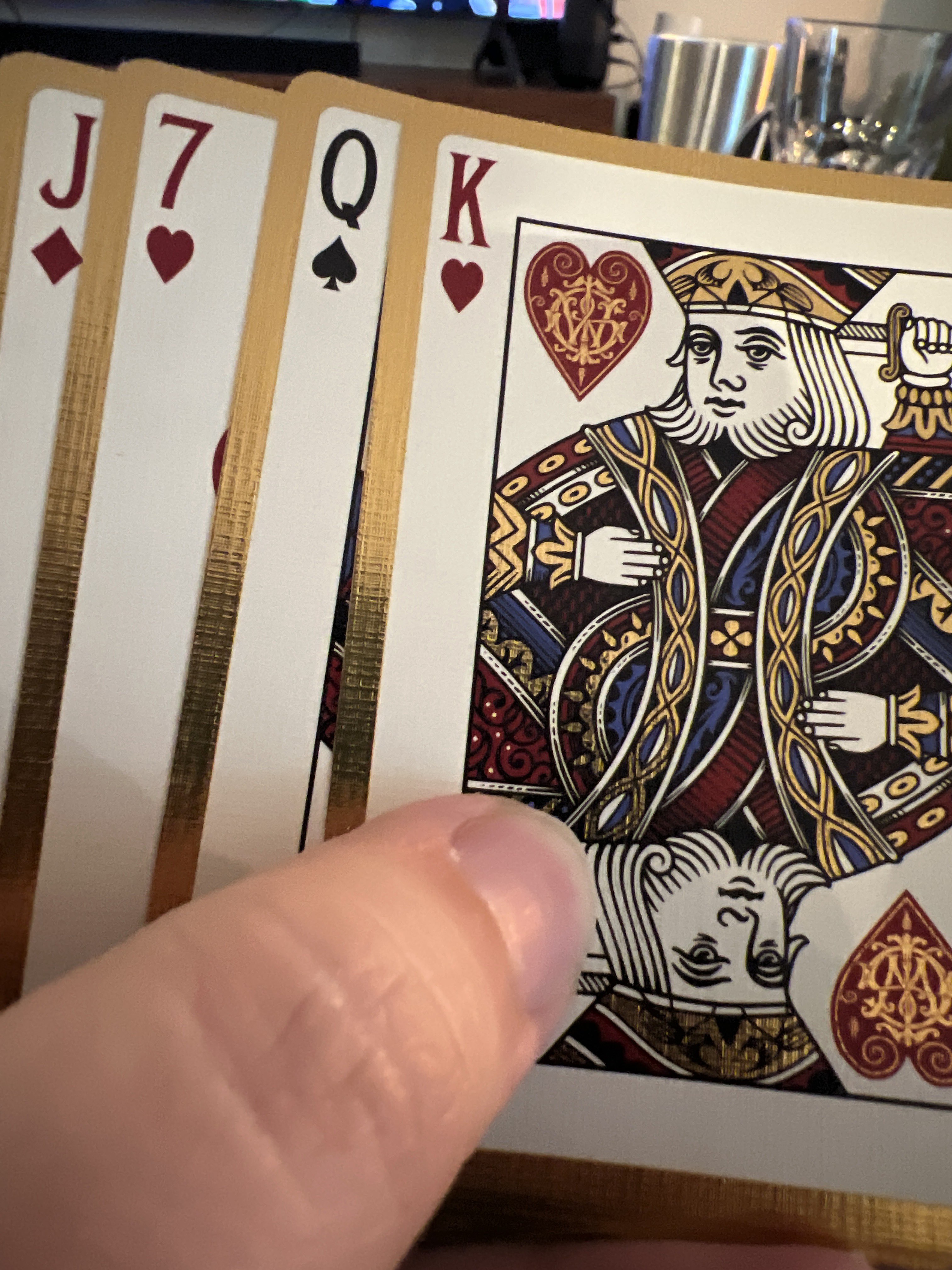 Cartamundi Prototypes came in. 3 months late. But at least in hand. Waiting on WJPC prototypes now too. Still undecided as to which facility I will use.