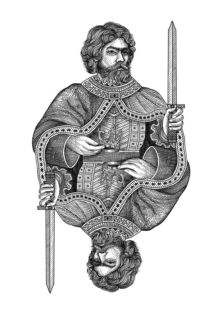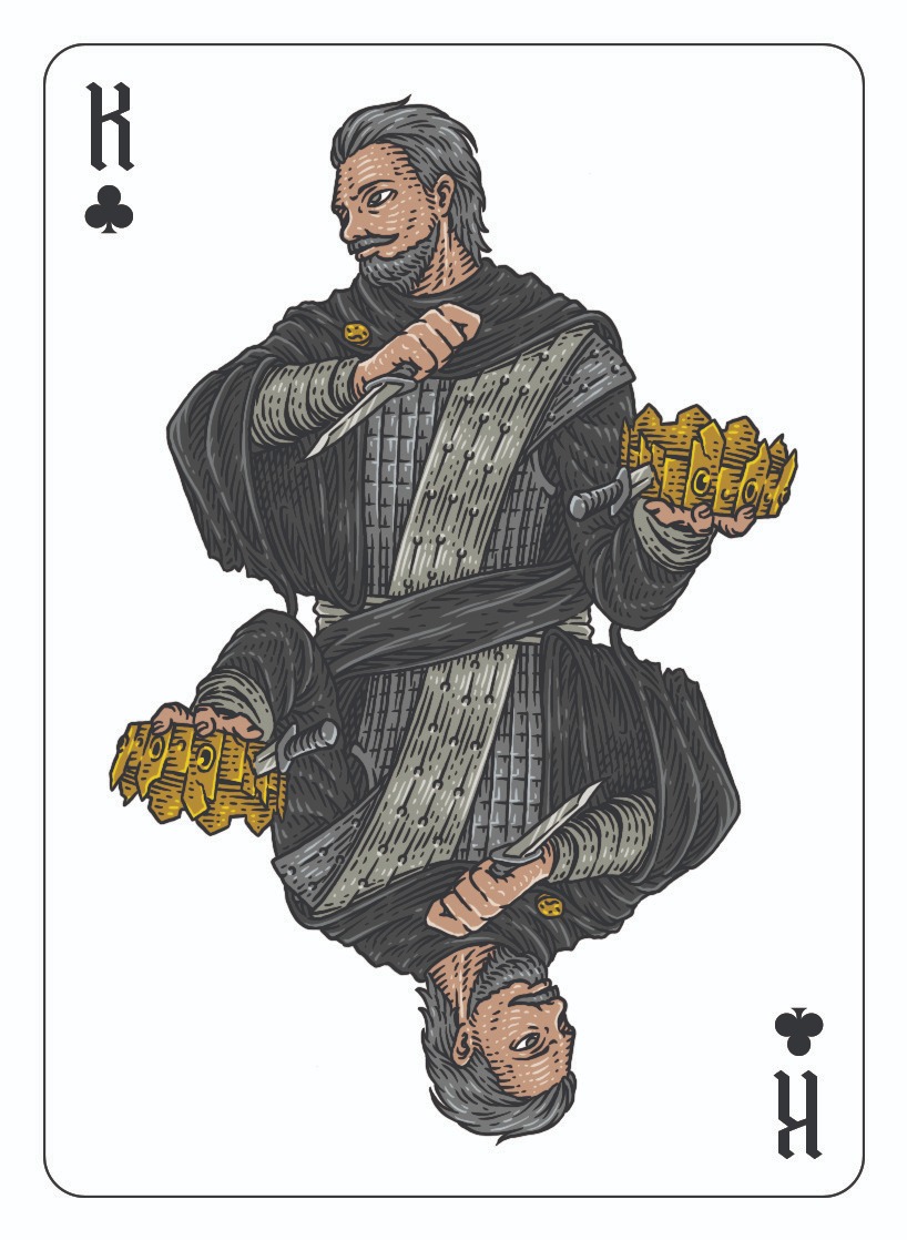 Today, a test illustration has just been completed, and I'd love to get your thoughts on the direction I'm heading in. Below is a test illustration that was done for the King of Clubs.