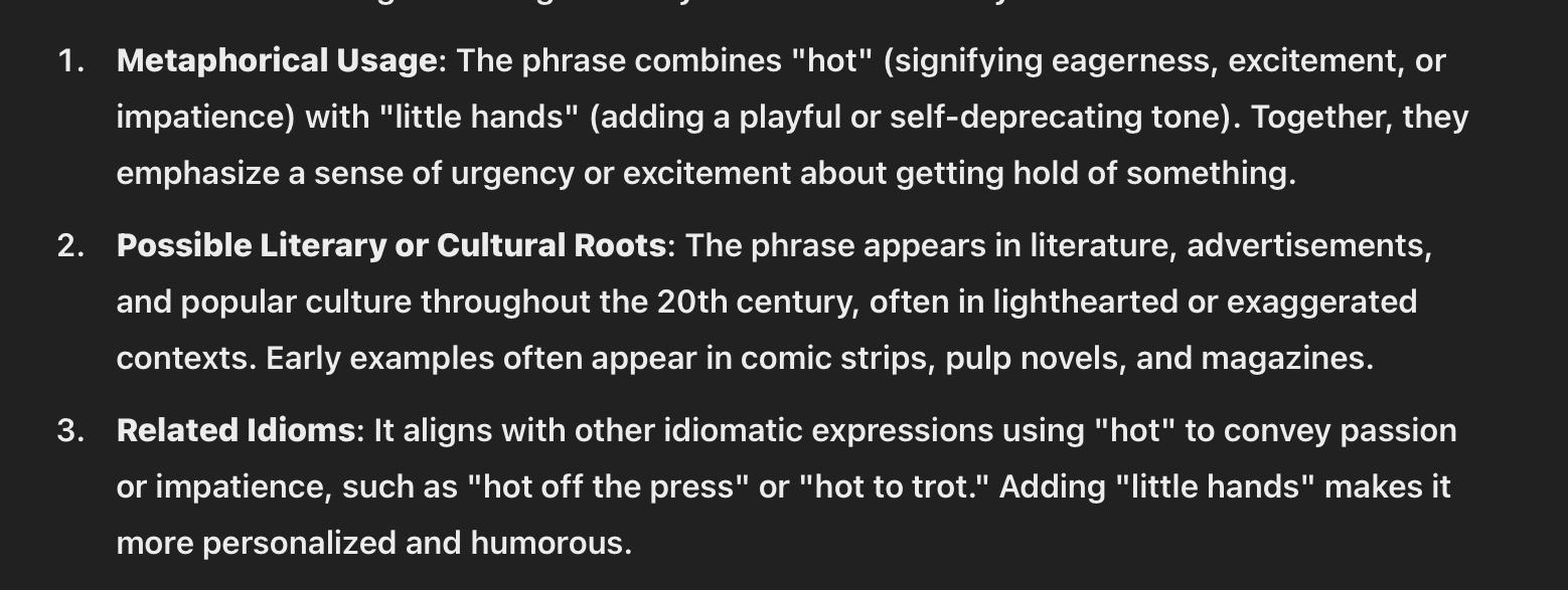Hot little hands? Is that a common saying where you are from? Is it hot there? Edit, I think i may know the meaning. Are you saying that your hands burn to have them and/or are having pain without them? Also I am wondering what part of the world you are in where that phrase may be common.CourtCurator wrote: ↑Wed Dec 04, 2024 10:17 am Judging from the teaser on Instagram, I’m really digging the final Mystery III. Can’t wait to get it in my hot little hands!