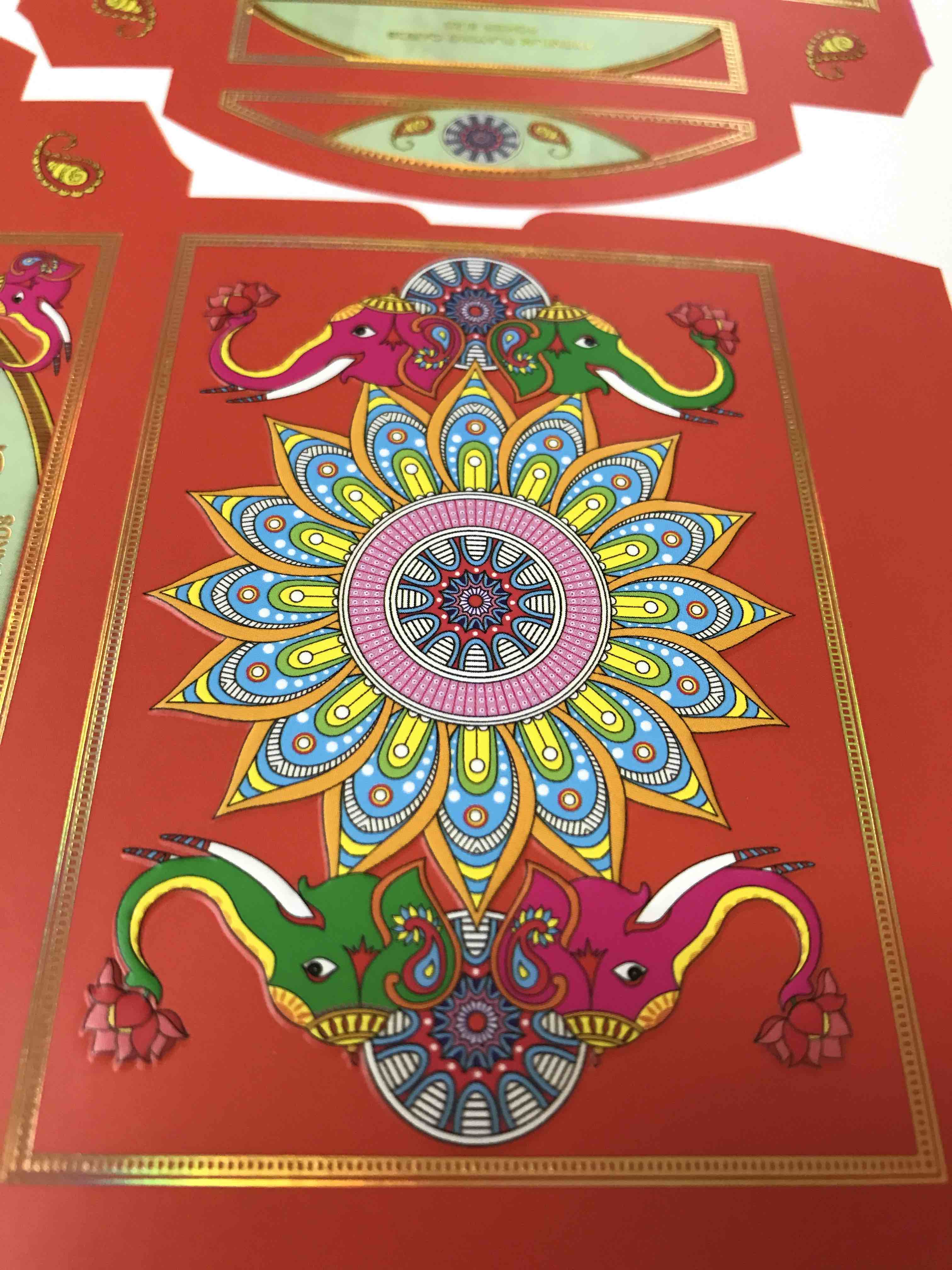 Embossing and inner foil on tuck is complete. Cards are in gilding workshop while tucks go for cutting at printer's.