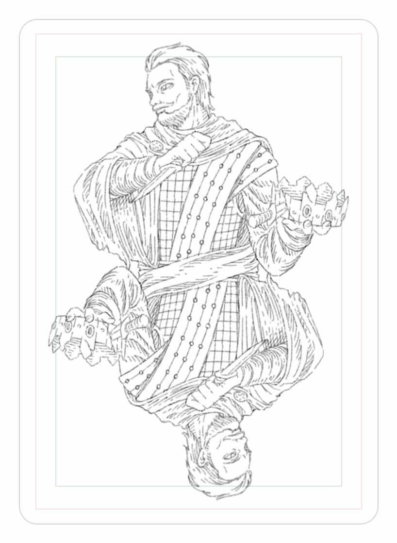 The initial sketch of the King of Clubs has been completed!