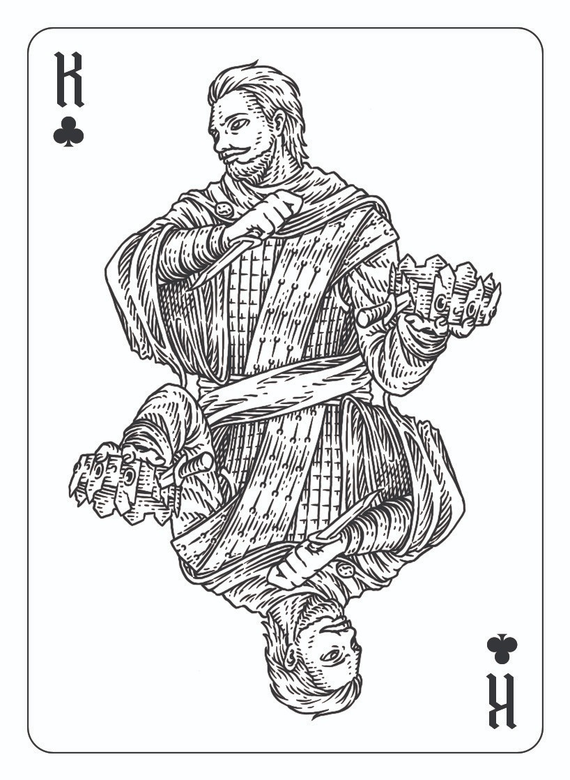 Here's the finished draft of the King of Clubs!