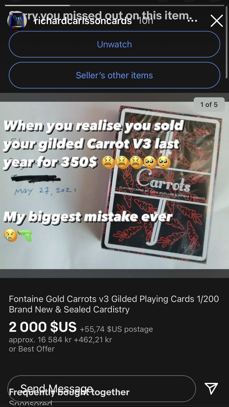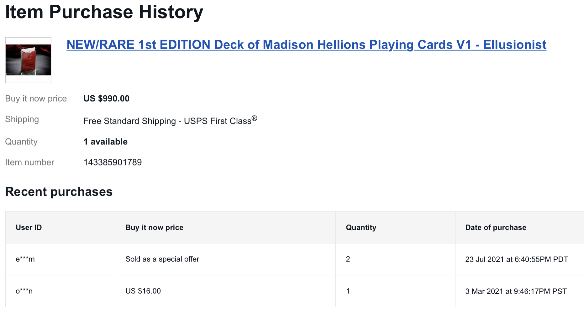 To be fair, the Red Label came with an additional normal Le Chat Rouge deck, which is about $100, so the Red Label itself sold for about $1125, but still...