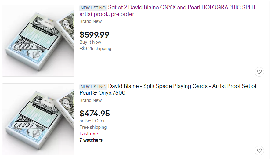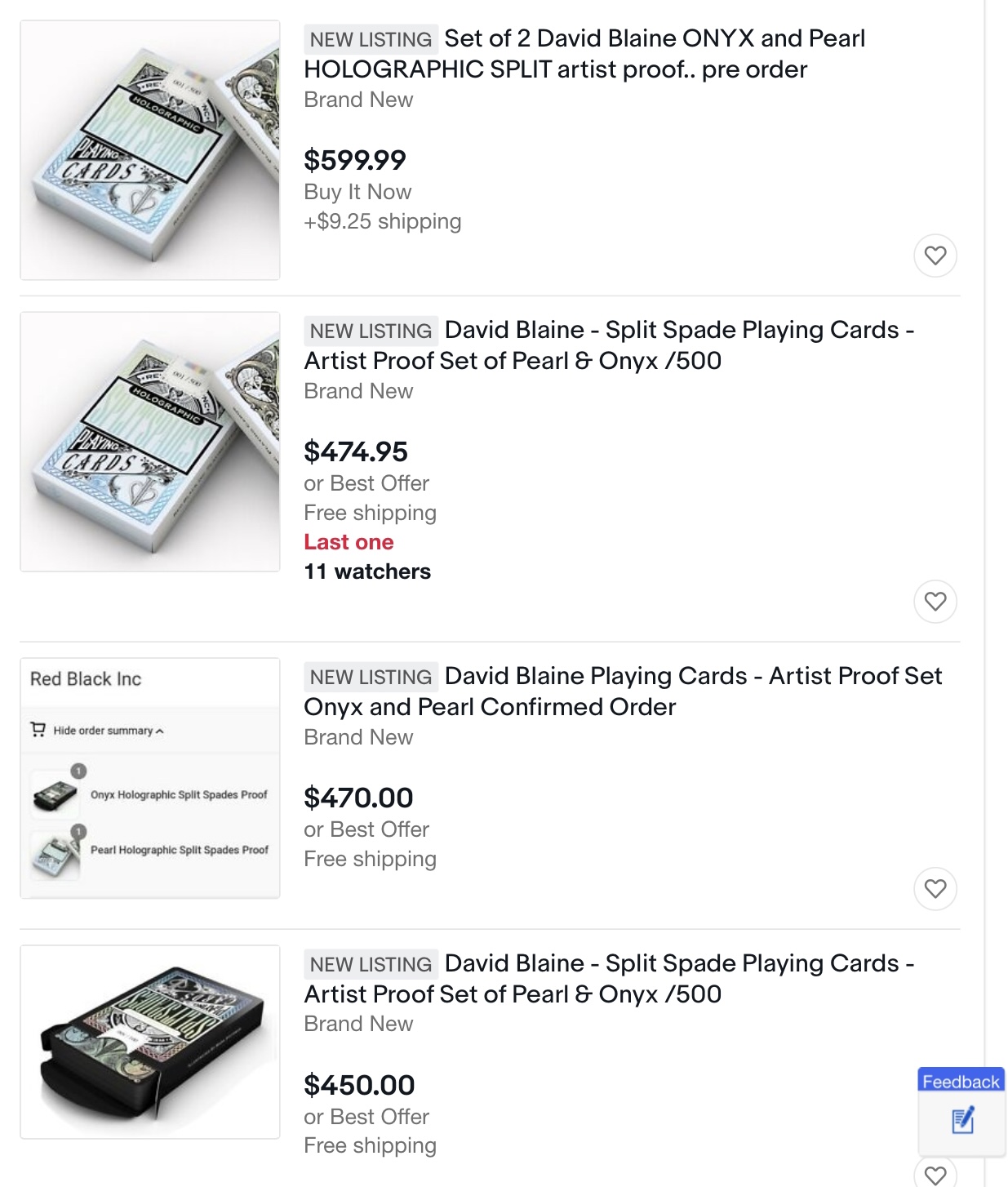 For those of you worried about missing the latest David Blaine drop, no worries. You can get it for the small, small price of around a 1430% mark-up, only minutes after the deck sold out.