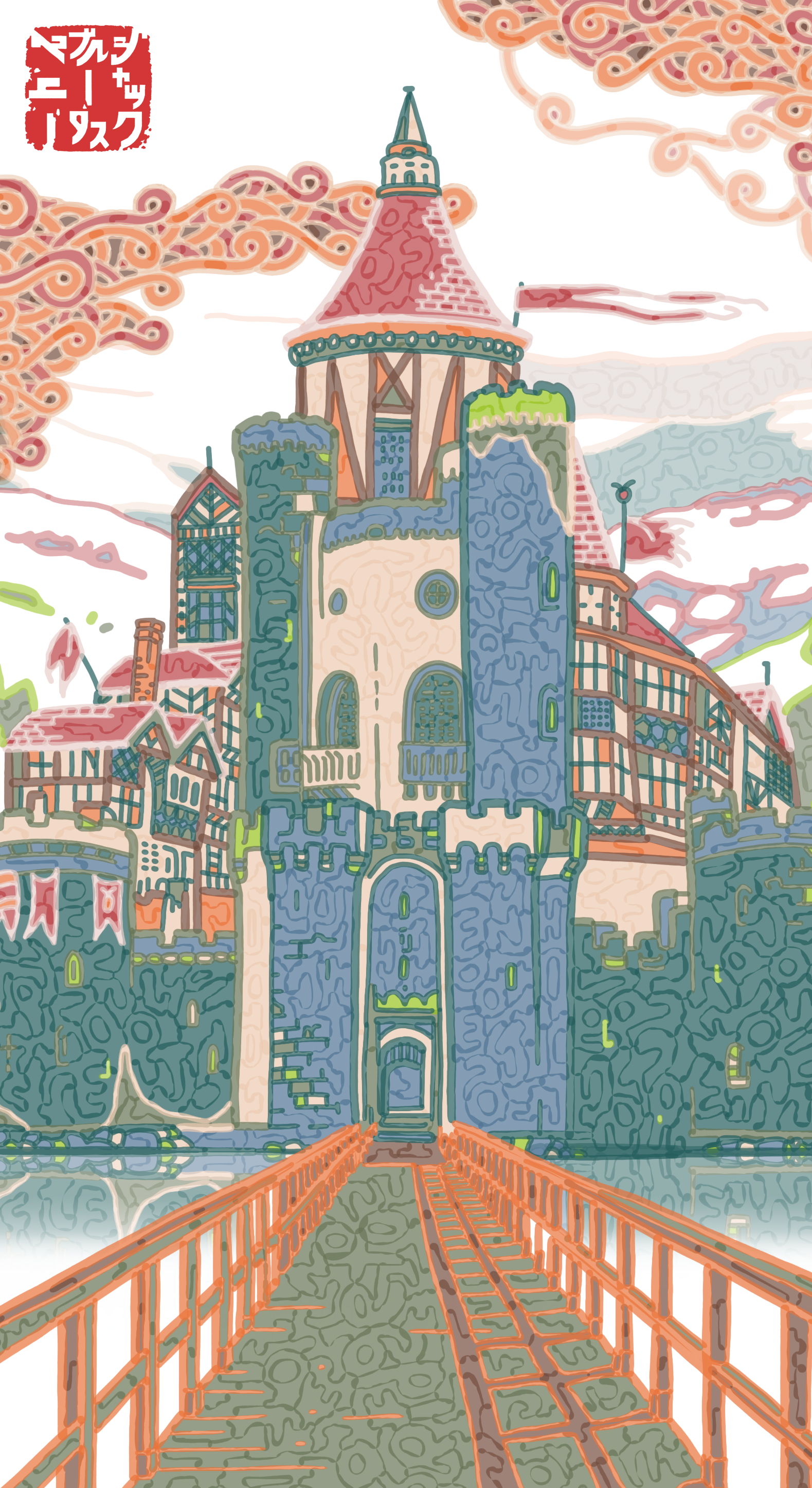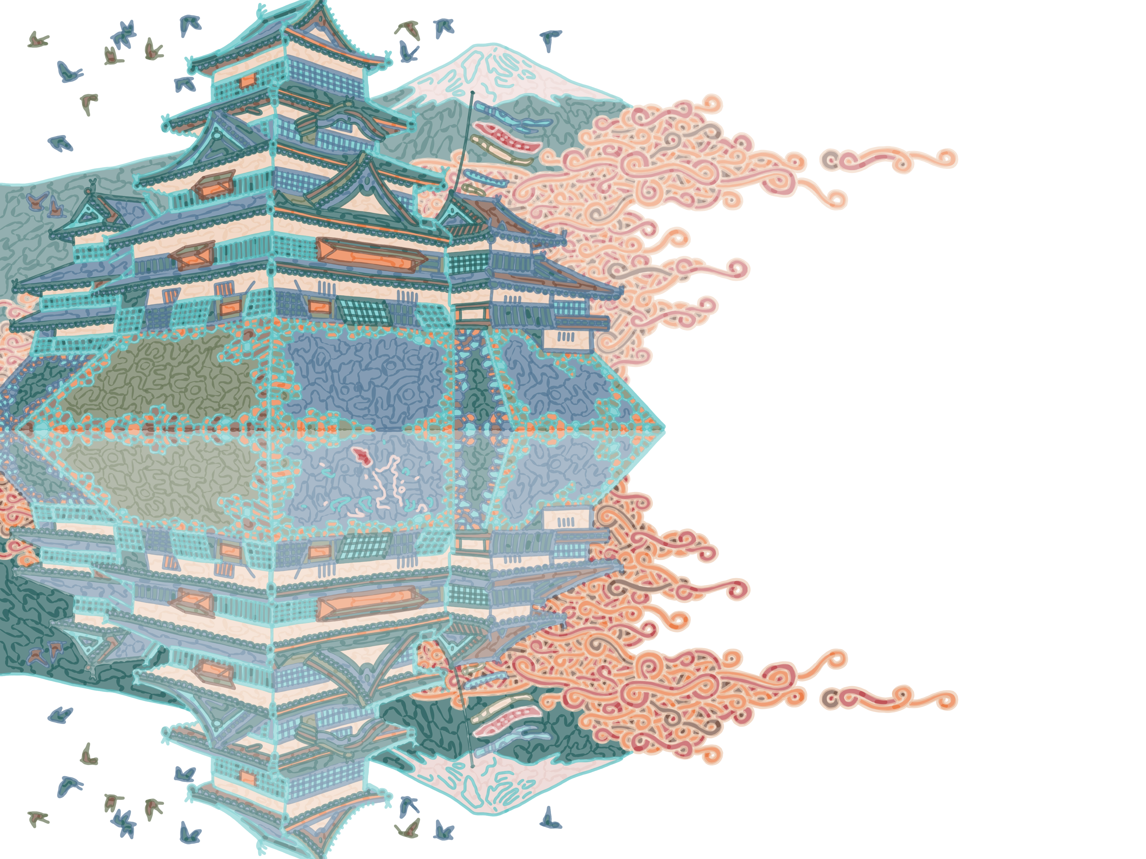 Over the last year, I have taken extracts from each of the 52 Culturae Animalis cards and blown them up and hand-coloured them in. I used the Sensu pallet to tie it in with the new campaign, except with each suit/culture having one unique culturally-significant highlight colour. I have also been writing 52 short whimsical nonsense stories to narrate the scene and world behind the deck. In the upcoming campaign, you will see how this all comes together. But to begin with, I will be offering free digital art to all backers and more digital art via stretch goals. This will all come in a few forms - but allow me to present, here, one piece of art provided for free through the campaign as mobile device homescreen/screensavers. I have been testing and using it myself for a few weeks now. The Culturae Animalis Ace of Diamonds (Matsumoto castle).
