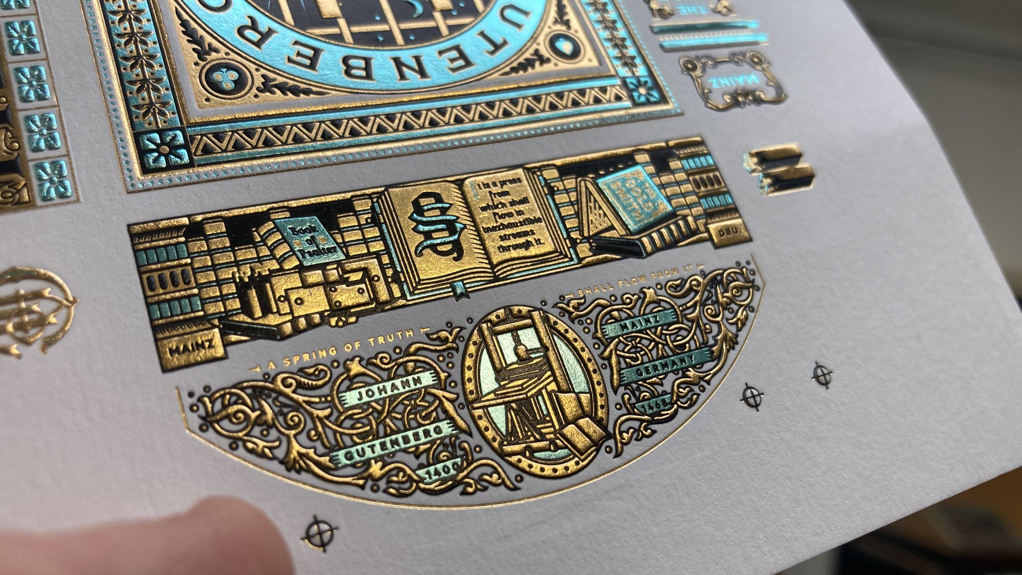 Early passes. Printer still dialing in the press. Also Still needs embossing.