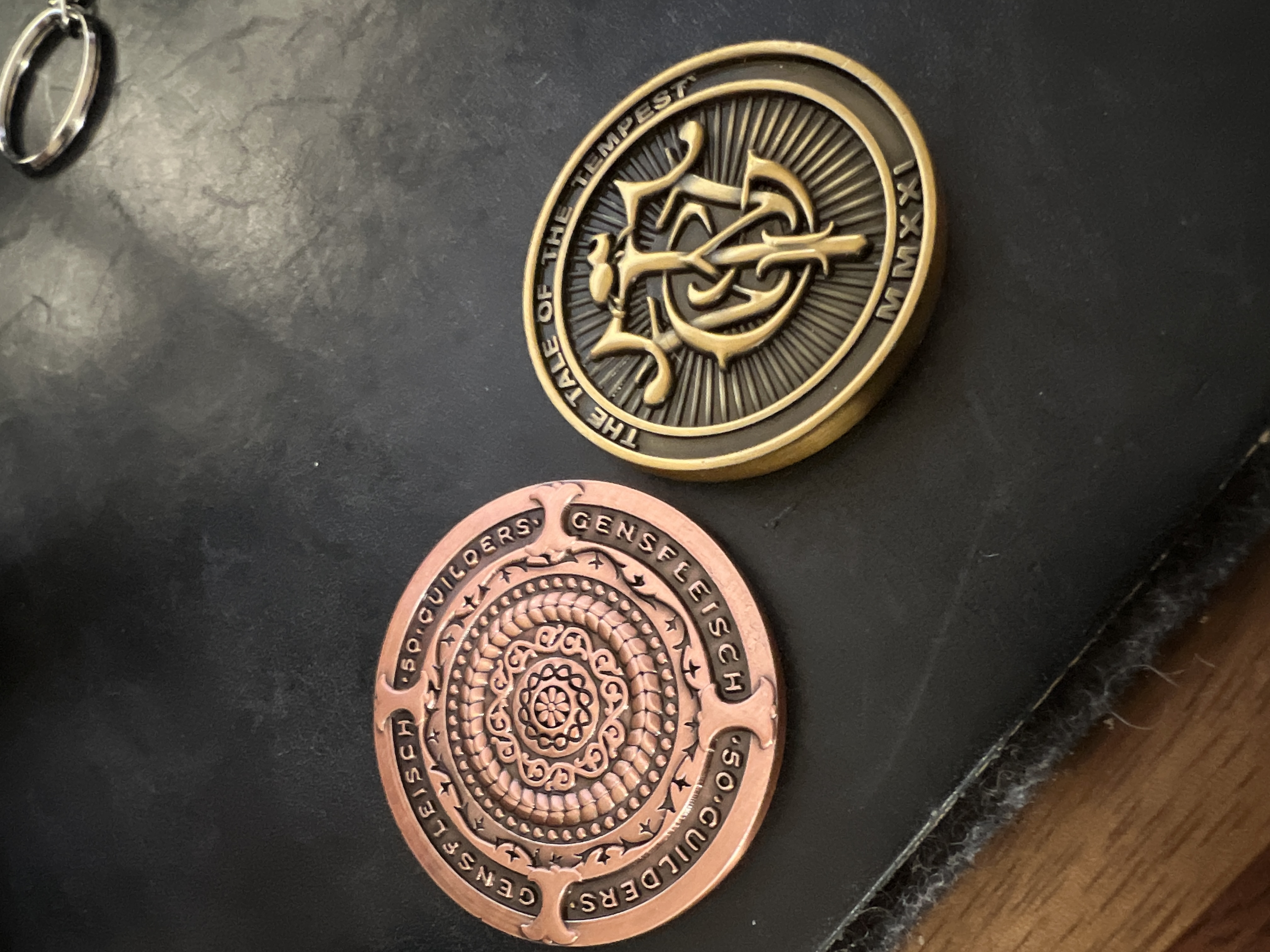 Don't get me started on coins! I have a ton, at one point I considered to start a coins thread but I wasn't happy with how the photos came out. I probably have well over 60 coins from different playing card campaigns. I agree that I don't like shiny coins, they don't present as well. Randy Butterfield has done some great coins, the ones he did for the Ornates are some of my favourites! I tend to prefer hard enamel over soft enamel over metal only, although Lorenzo's coins always manage to blow me away.GandalfPC wrote: ↑Mon Apr 24, 2023 12:03 pm Also a bit of a coin-geek and pass on most - that sheep token from noir was super, as were a few others - the less detail, the less relief, the shinier, the less I am interested
