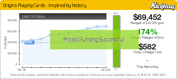 For example, look at either the "Origins" or "Requiem" decks which are active/funding right now: they now contain the new extremely informational dual panel that contains both the kickstarter.com panel and the kicktraq mini-page side-by-side. For an example, here's the Origins KS project dual panel: