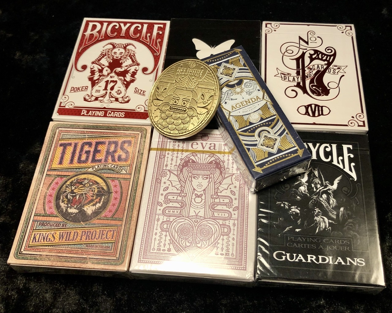 Today's haul from Wounded Corner, mostly Bicycle decks, but super pumped on all of them, especially the Espionage Deck. Also a second Blood and Beasts gold deck not pictured