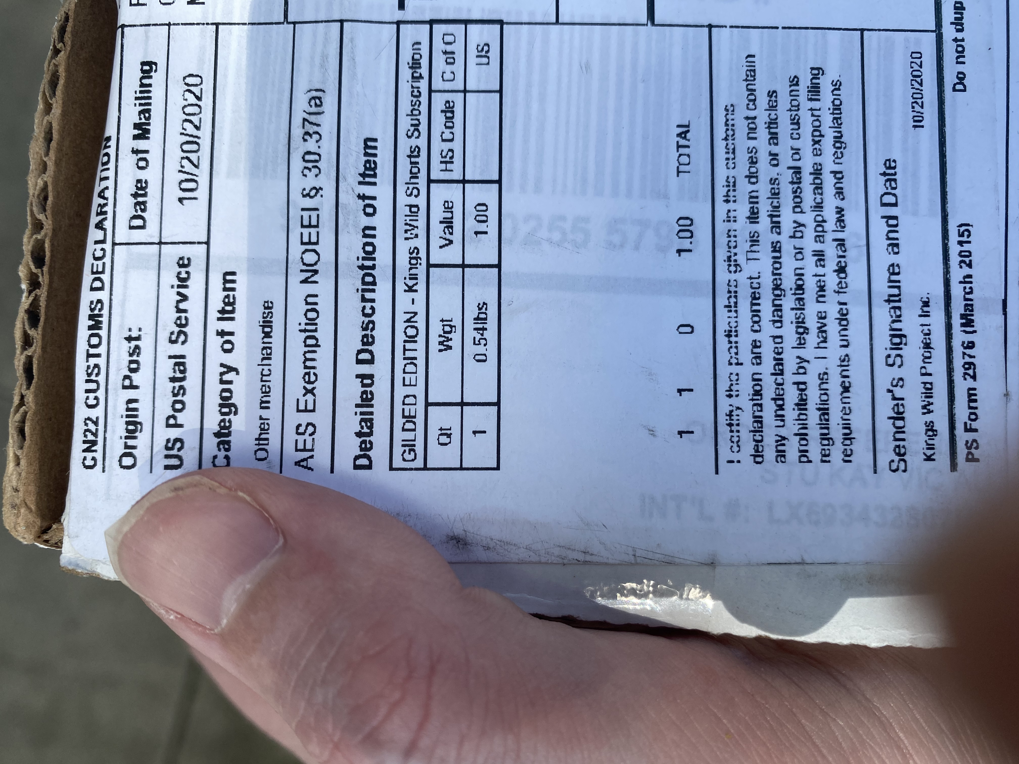 Gobsmacked at that mailing date. Stuff JR sent mid-Sept hasn’t arrived yet.