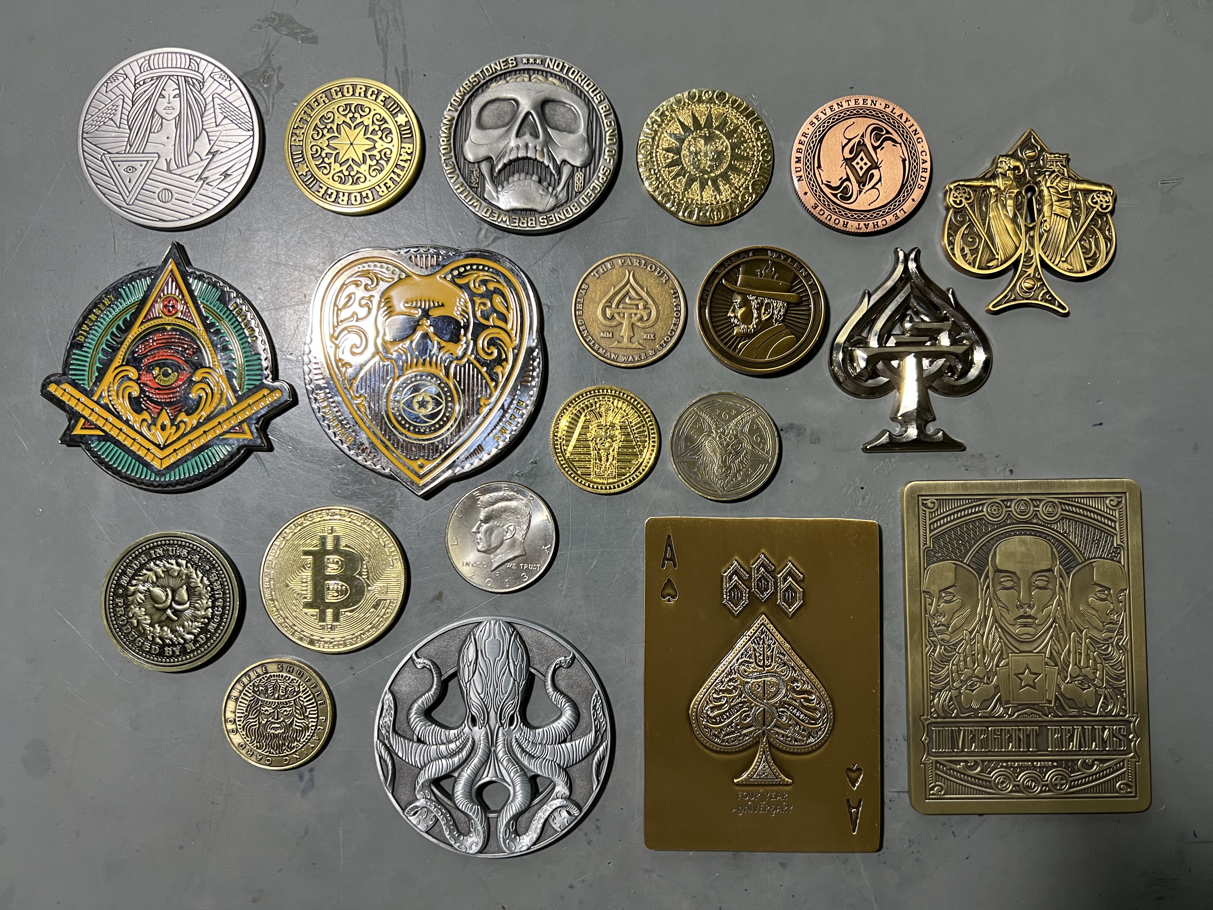 Here is my small collection, a shot of my favorites, and the coins I got from Dead on Paper (kinda sorta card related) that I absolutely love.