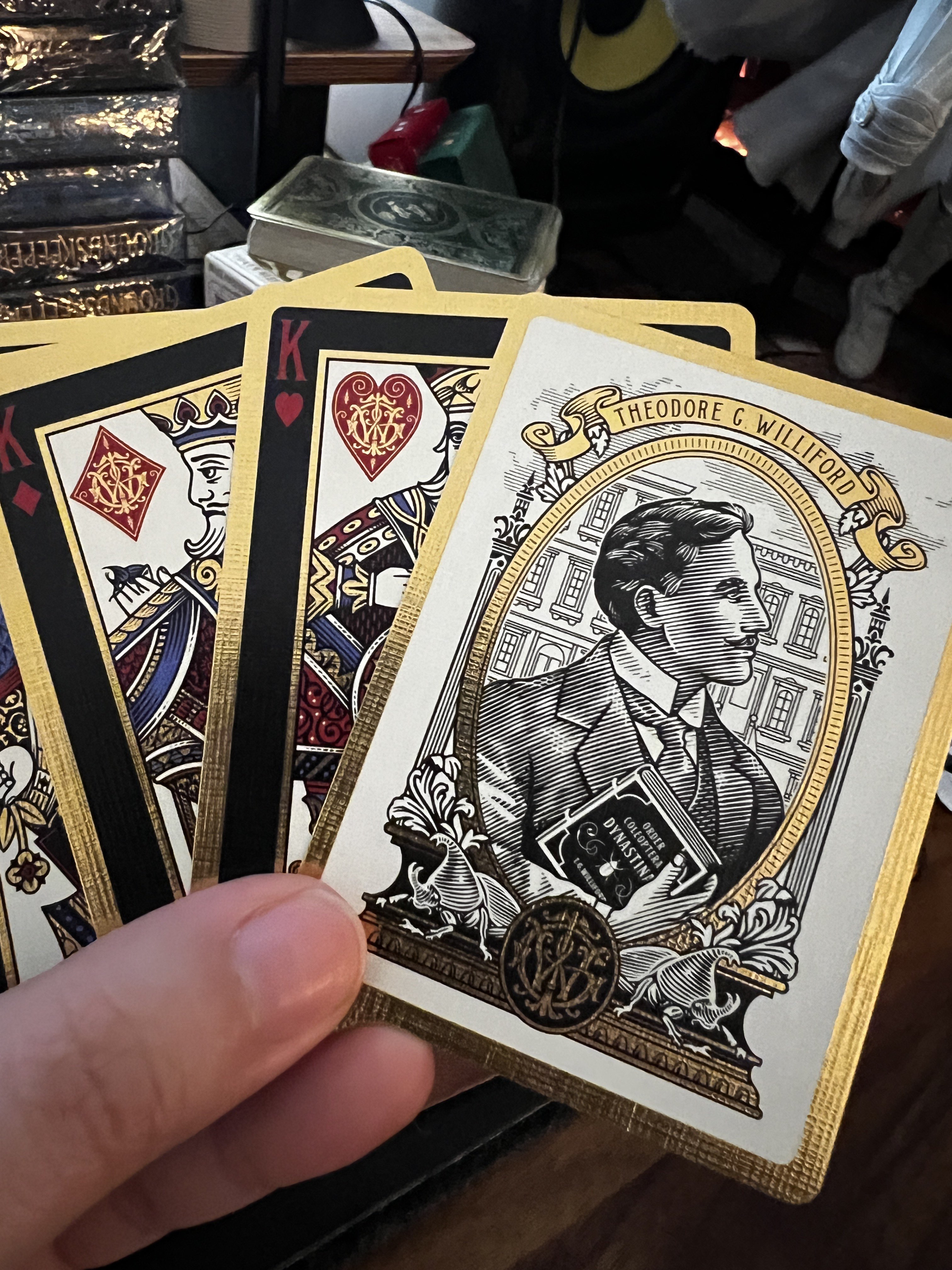 I am a newb, coming in late (so much to catch up on). I agree with Omar's thoughts completely. I love my TOTT's and see these courts as a very subtle variation eg here is the Ks from TOTT and the rough of the Ks from Omar's post on pg2 of this thread - very similar. Note the TGW beetle on the King's pendant from the TOTT'TheGentlemanWake wrote: ↑Thu Oct 20, 2022 10:37 amEasiest answer is that this is my vision at this time. I also think beautiful customized standard courts will perform better overall in the general market (not just collectors). To me the beetleBacks should feel like the flagship TGW deck in the way the rider backs are the flagship bicycle deck. Maybe later on there will be a version with a court of beetles but not this time. I personally LOVE it when the courts are an homage to the highly recognizable standard courts but done in fresh ways.PiazzaDelivery wrote: ↑Thu Oct 20, 2022 9:02 am Correct me if I'm wrong, but wasn't TotT supposed to be