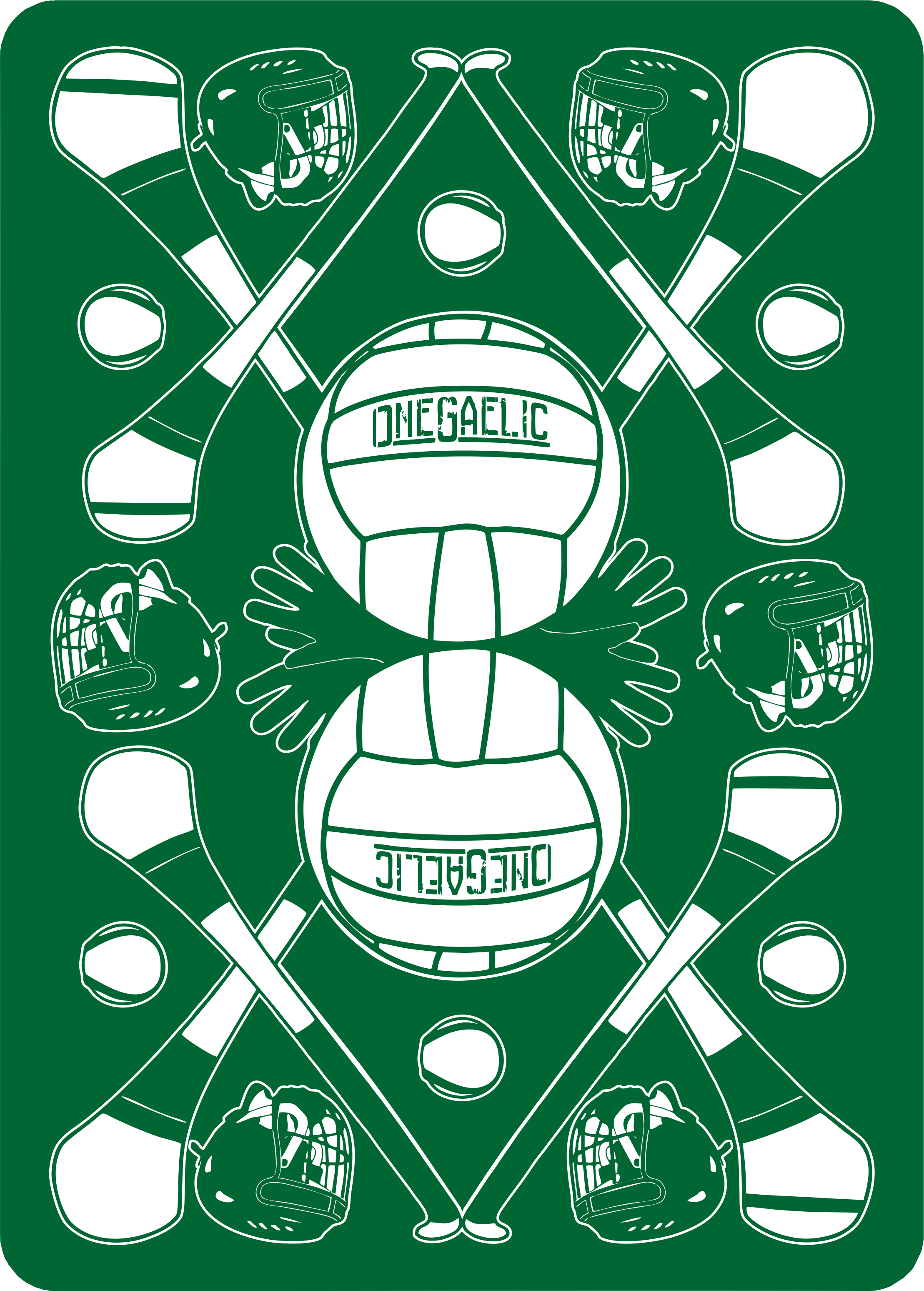 I have taken the four main Gaelic sports of Hurling, Camogie, Football & Ladies Football (you might know them as Gaelic Football & Ladies Gaelic Football) and given them their own suits. I have then taken the top performing 13 Irish Counties in each sport and assigned them to a card, with obviously the Aces being the most successful Irish County at that particular sport.