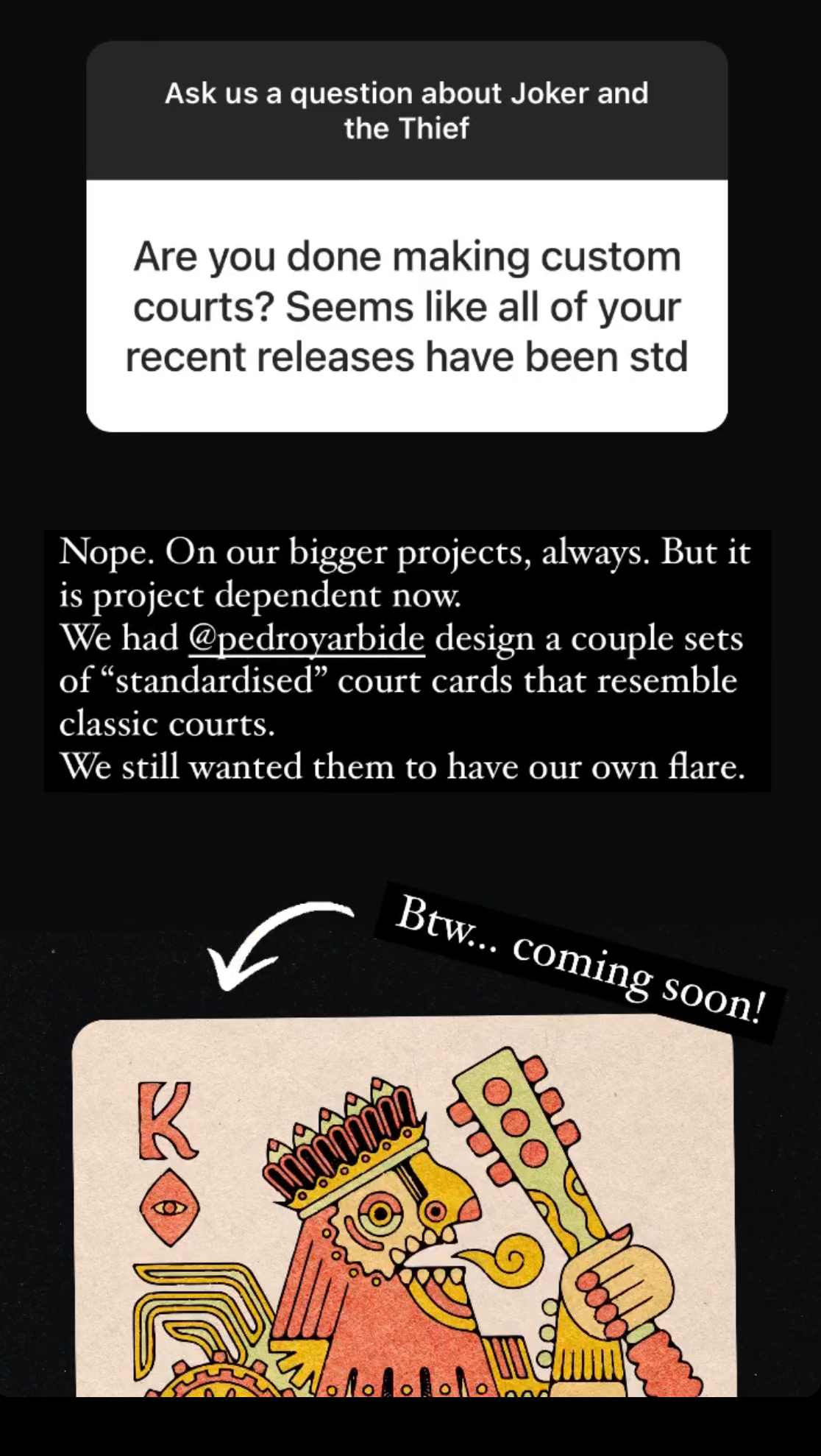 They never left the fully custom path. Psychonauts release wasn't that long ago imho. Between their fully custom decks they've always sprinkled in less complex projects like recolours or cardistry focused decks.