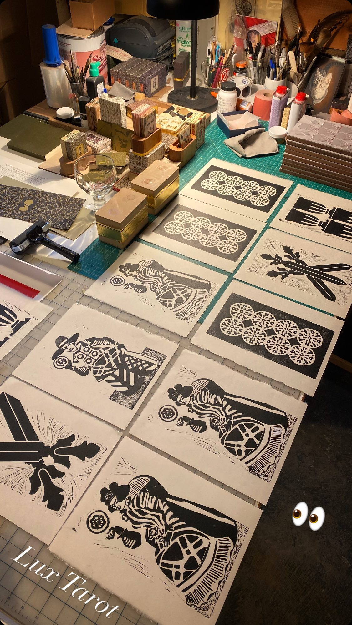 "When "Lux" is finally completed, don't worry; we are still pushing to finish close to our goal date! β we will close a chapter with our tarots at Uusi. "Lux" will be the last tarot that Peter and I work on. This wasn't planned, but it feels like our work with this object has come full circle. With this deck's content, we are looking far back to places of felt knowing, and as the saying goes, when you know, you know."