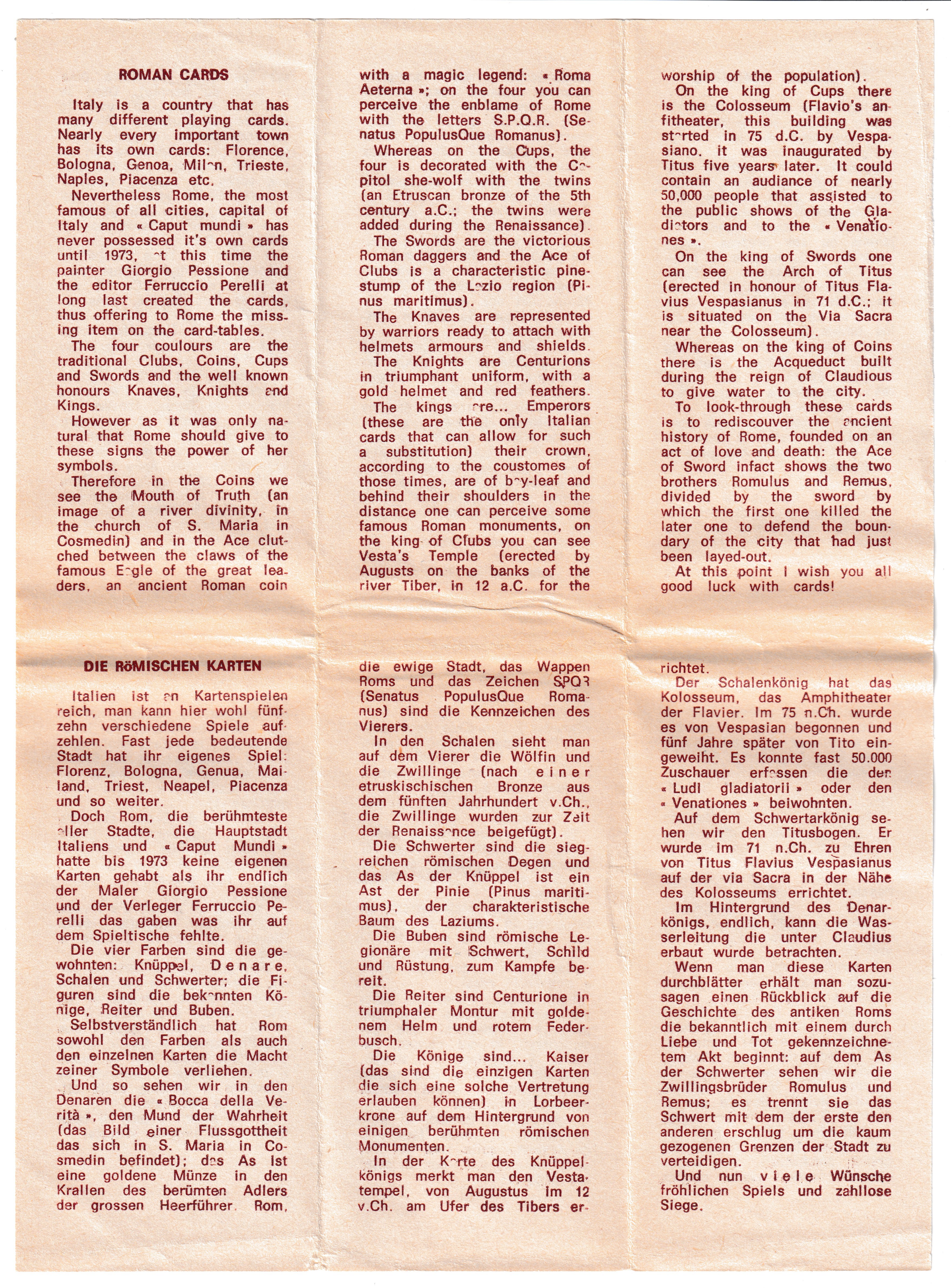 Carte Romane, designed by Giorgio Pessione in 1973 – published by Capitol Carta Roma.