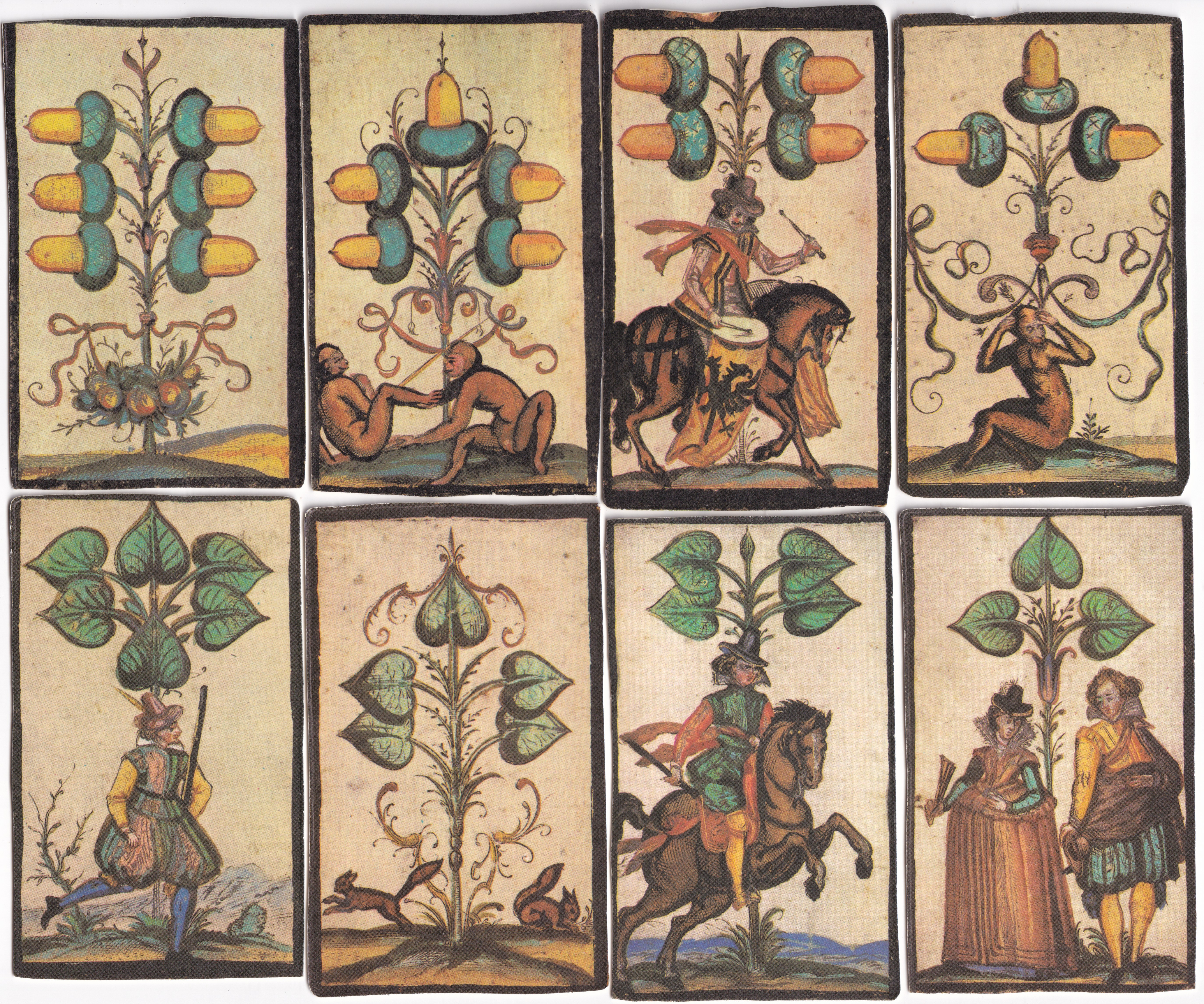 I.M.F.'s playing cards afford an insight into courtly life and manners just before the outbreak of the Thirty Years' War, which only a year later was to deal a shattering blow to the apparently intact world of the carefree and luxurious upper orders of society. The hindsight that brings awareness of the misery of the time to come should not, however, be allowed to detract from our pleasure in contemplating these charming documents of their time."