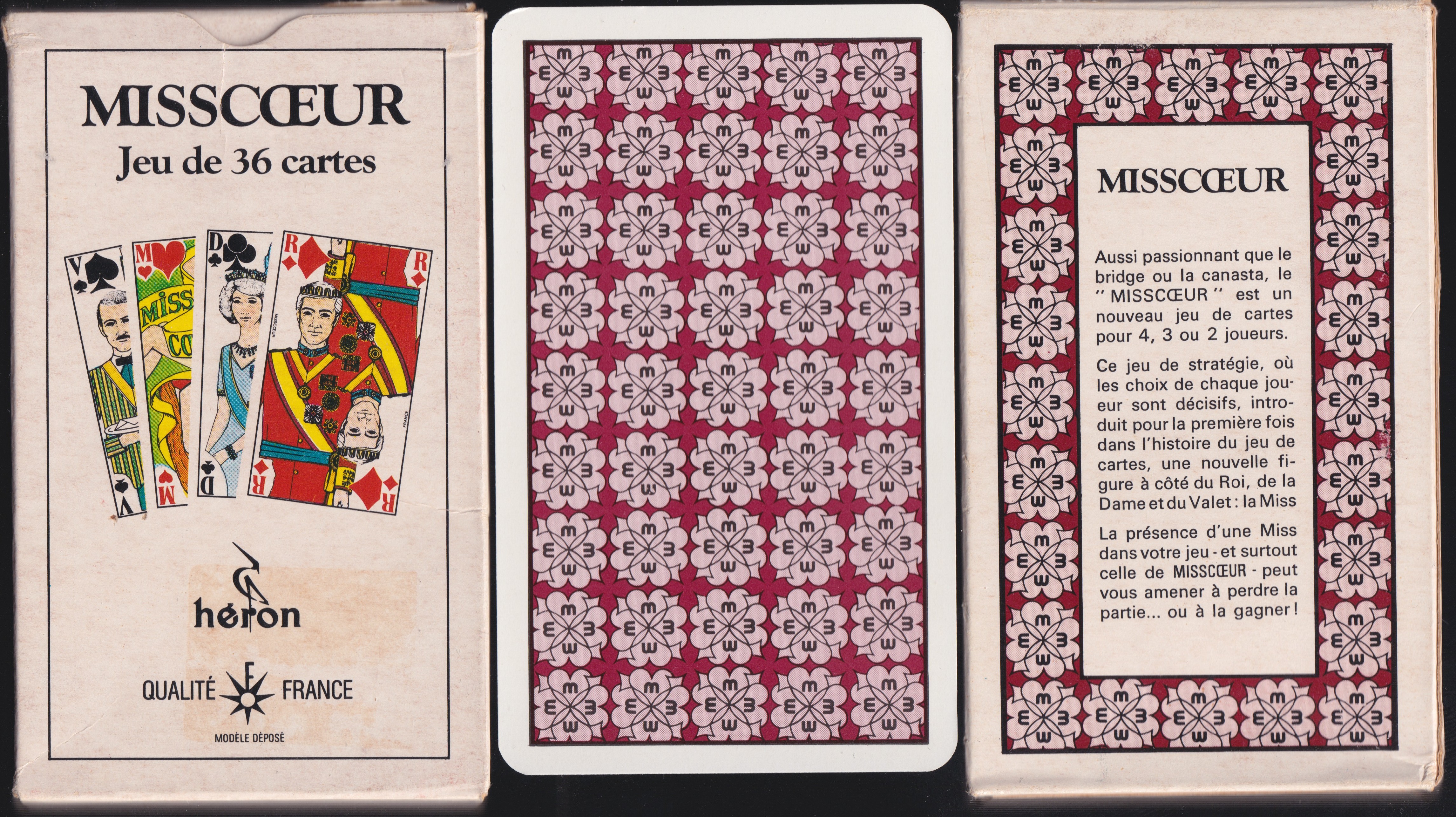 A fourth court card, a “Miss”, has been added to a regular 32-card deck.