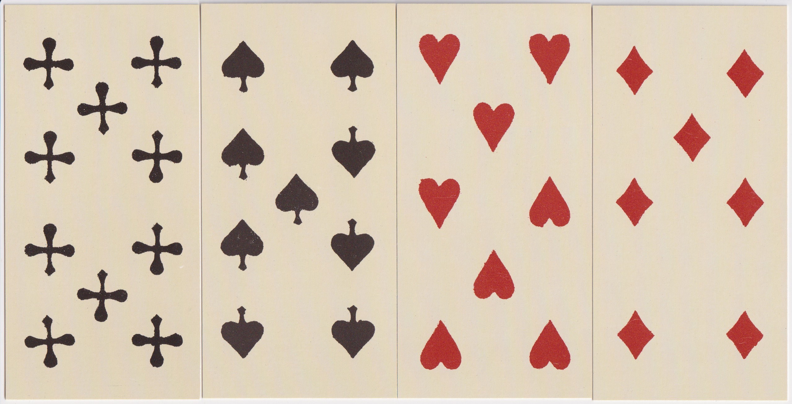 The purpose of the cards is to pass time pleasantly with the subject matter deriving thematically from the suits.