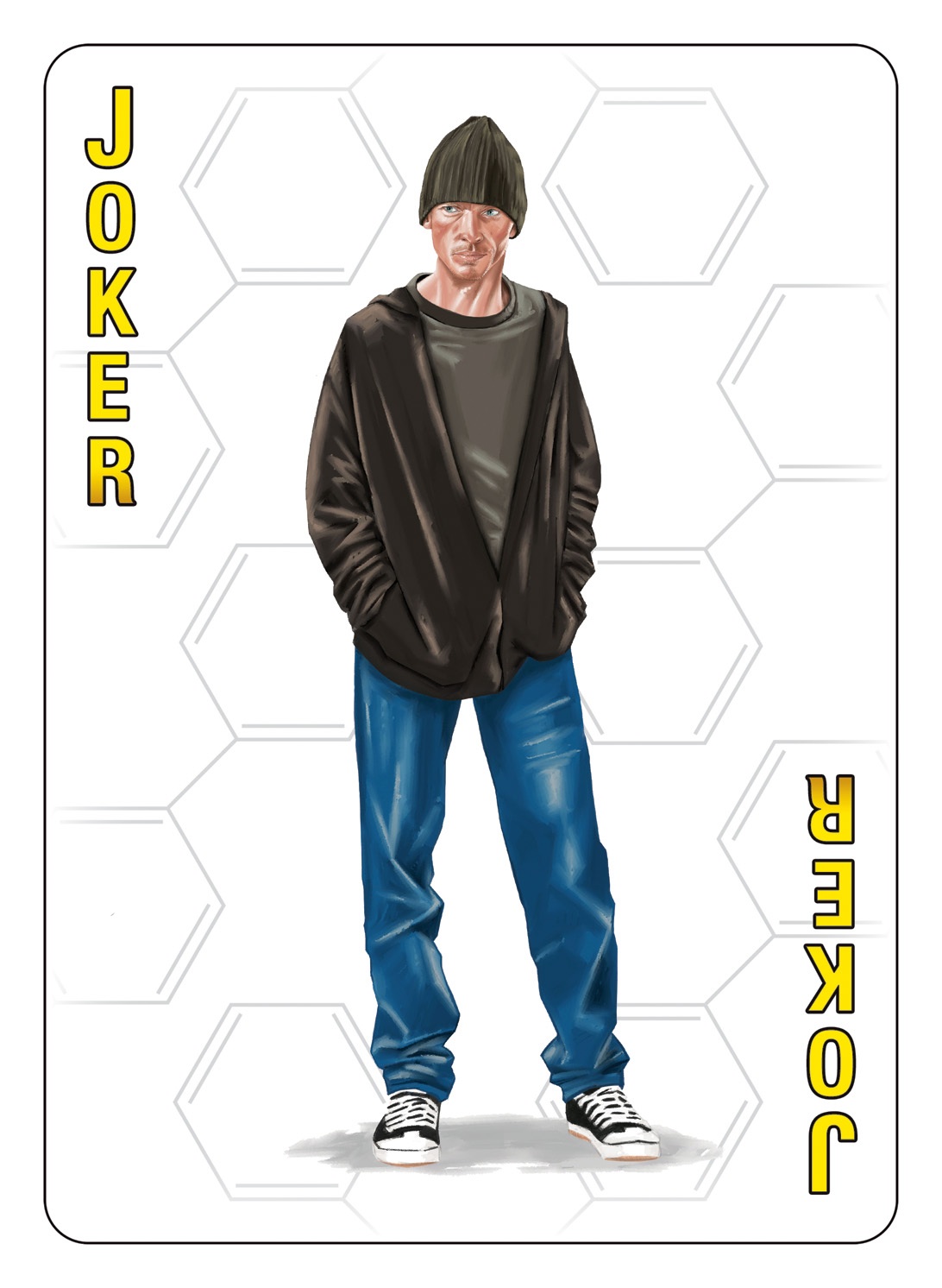 I did everything except for the Character Drawings. The Artist Albino Dragon hired did an excellent job with the Character Drawings, but they needed someone to take it from there and create a Deck(s) Design that fit the mood and brand look of the show. I'm a big fan of Breaking Bad and had a blast doing it!