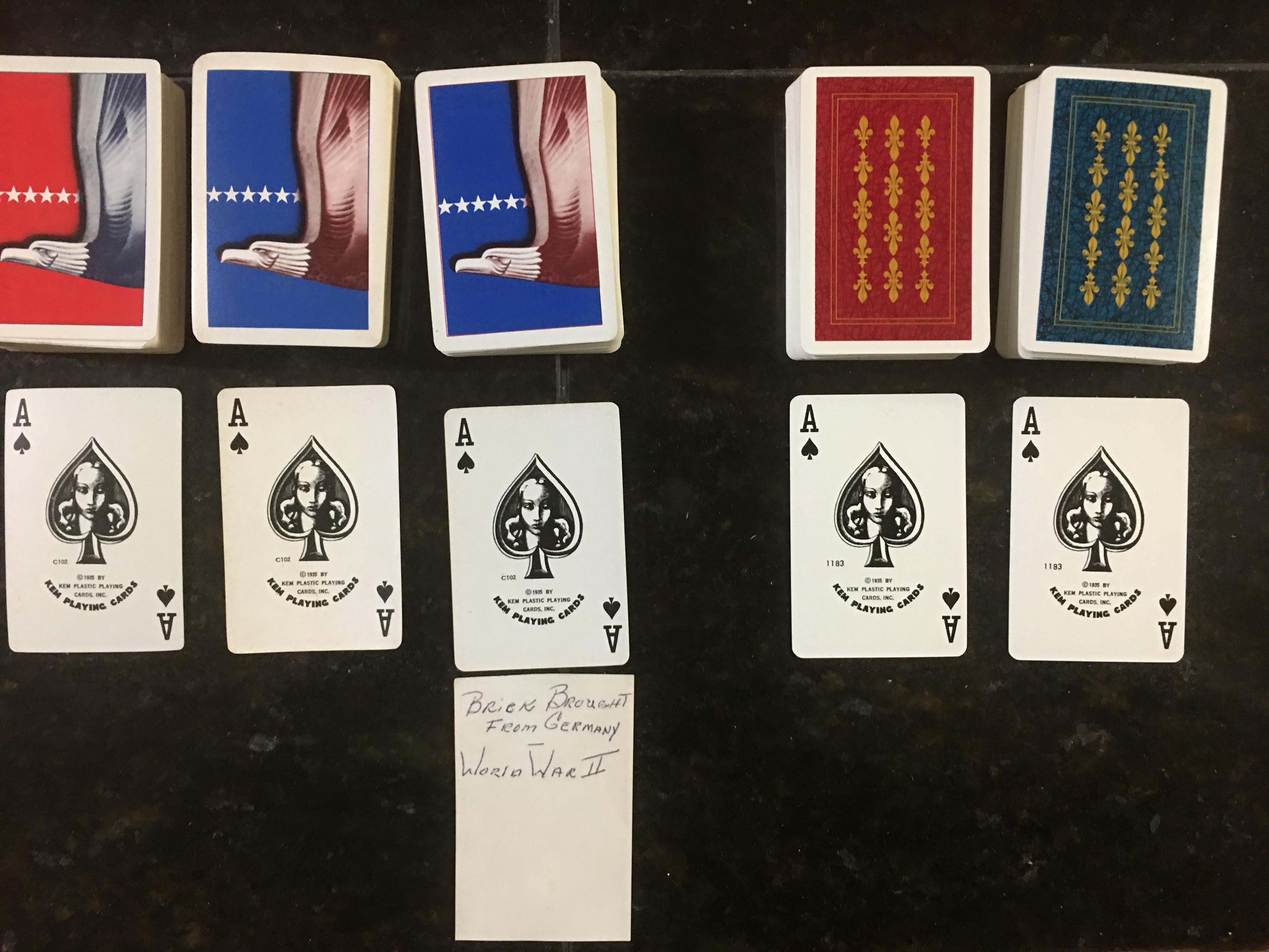 That is really good to know. I plan on keeping them for now but always nice to have a rough idea of worth too. I really do appreciate all of that knowledge!kem-collector wrote: ↑Thu Jul 16, 2020 11:18 amWelcome and thanks. The fact that it is sealed is a huge bonus for Kem collectors. But it being the newer version is a bit of a minus. That being said, buying it for $1 is a steal as if you popped it up on eBay for $50, I would imagine it would sell immediately...might even go up to $75-$100. You don't see many of the mini eagles show up and almost all are the originals with leather case and they are roached. Yours is the first one I have ever seen sealed - I don't even know if the originals were ever sealed since they were made during wartime conditions and materials in manufacturing were restricted in many cases to wartime goods/equipment only. I know there is also a sub-set of Kem collectors that buy only original cello-sealed decks and they pay through the nose for them.Stud722 wrote: ↑Thu Jul 16, 2020 8:21 am Appreciate all of the info! I had never seen the mini deck like this. Great to have some knowledge of them. I thought they were a good pick up at an estate sale for $1. Not sure what they go for but for $1, they look nice in my collection.