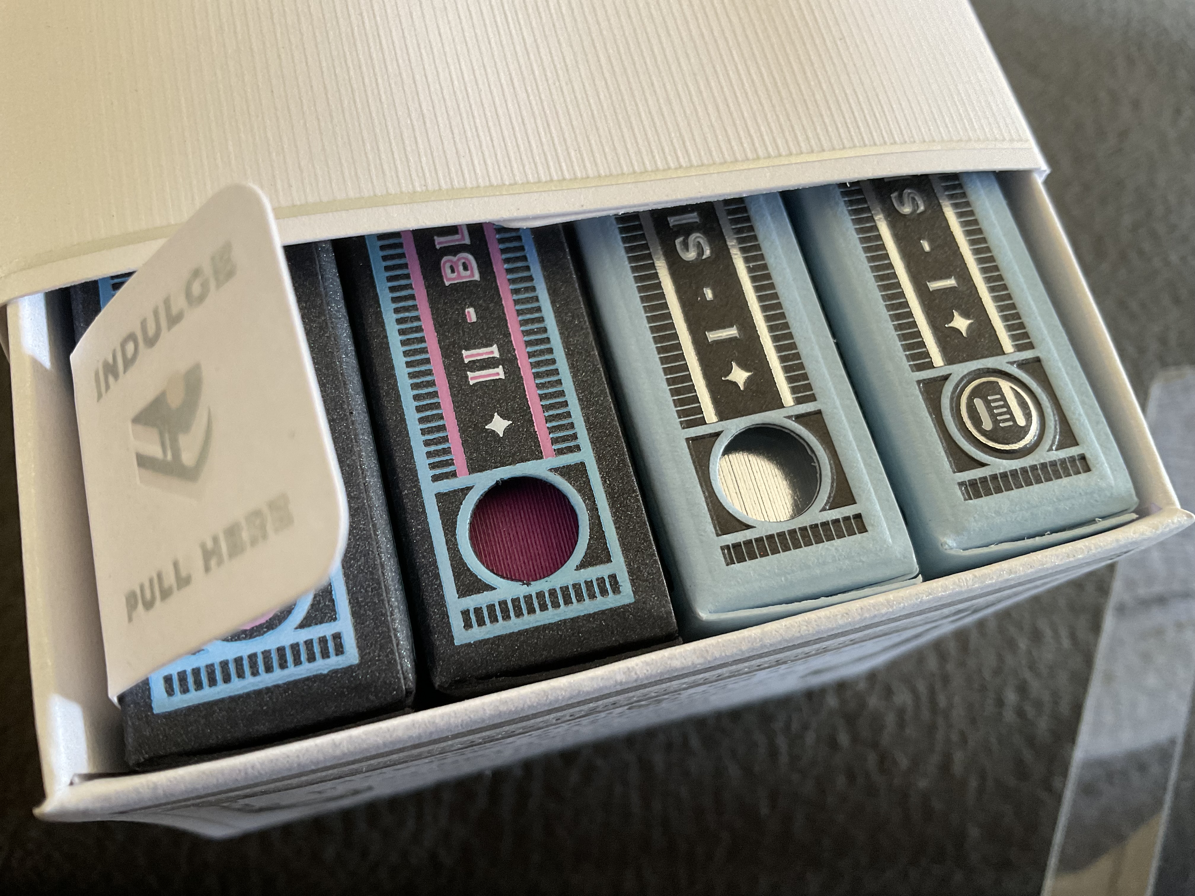 (Even if your deck is unopened you should be able to see through the tuck peep holes)