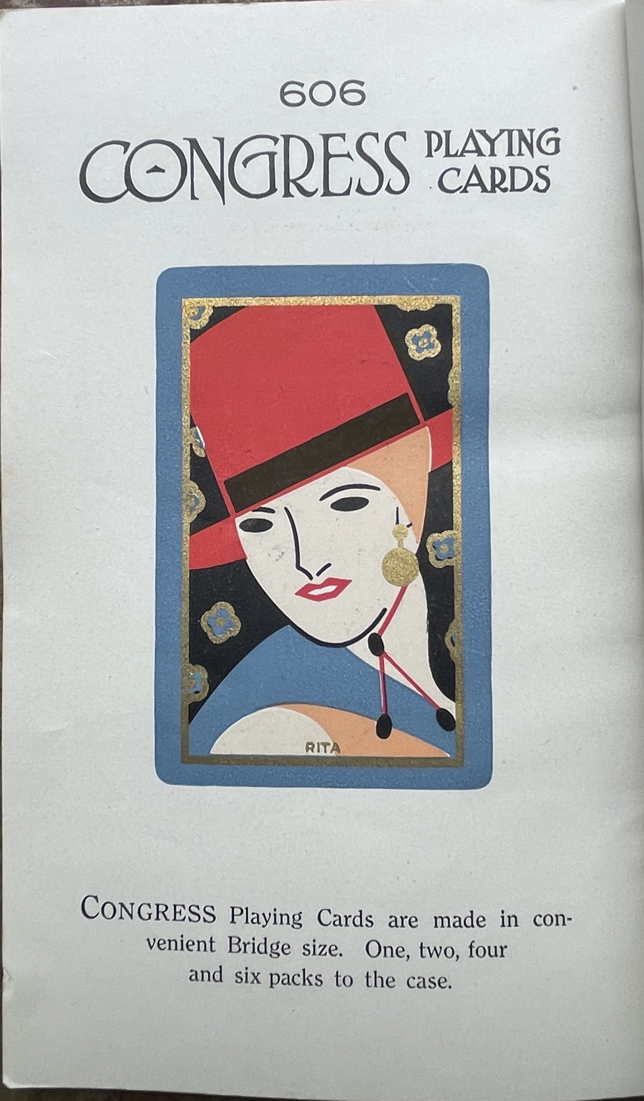For today's Ephemera Friday, we move to the 1928 Easy Lessons in Auction Bridge publication from USPCC. Has some great Congress ads with full size representations of some narrow Congress cards of the time, complete with the reflective metallic inks. I especially like the categories of card backs they advertise on the Petite page. Below are Dolores, The Belle, Rita, and Petite.