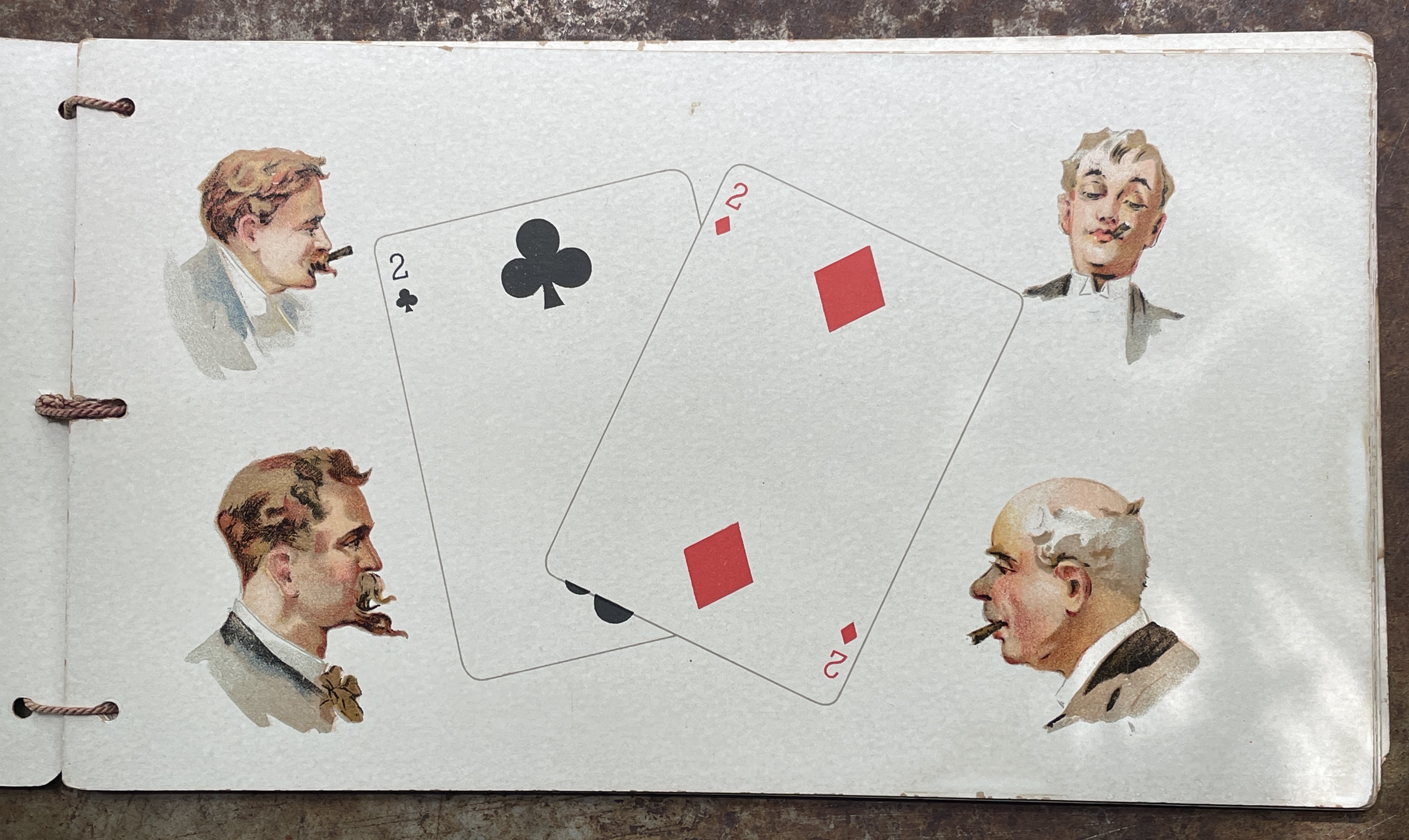 Finally got my hands on an 1895 "It's All in the Draw" bound booklet, so I'll be posting the pages here over the next few days. Nice poem and illustration for poker hands in ascending order. Draw referring to 5 Card Draw poker. Booklet measures 9 1/2" x 5 1/2". Enjoy!
