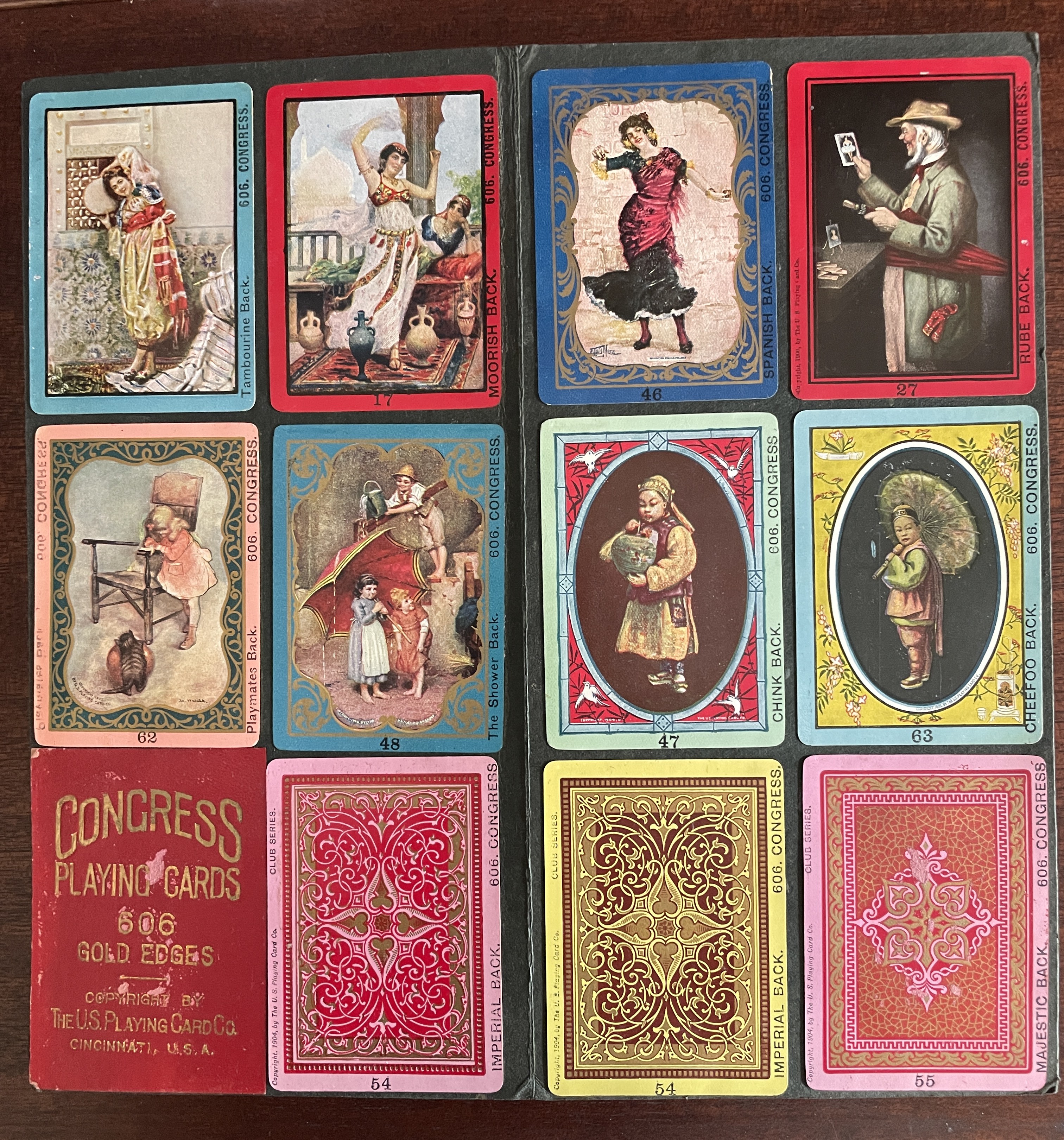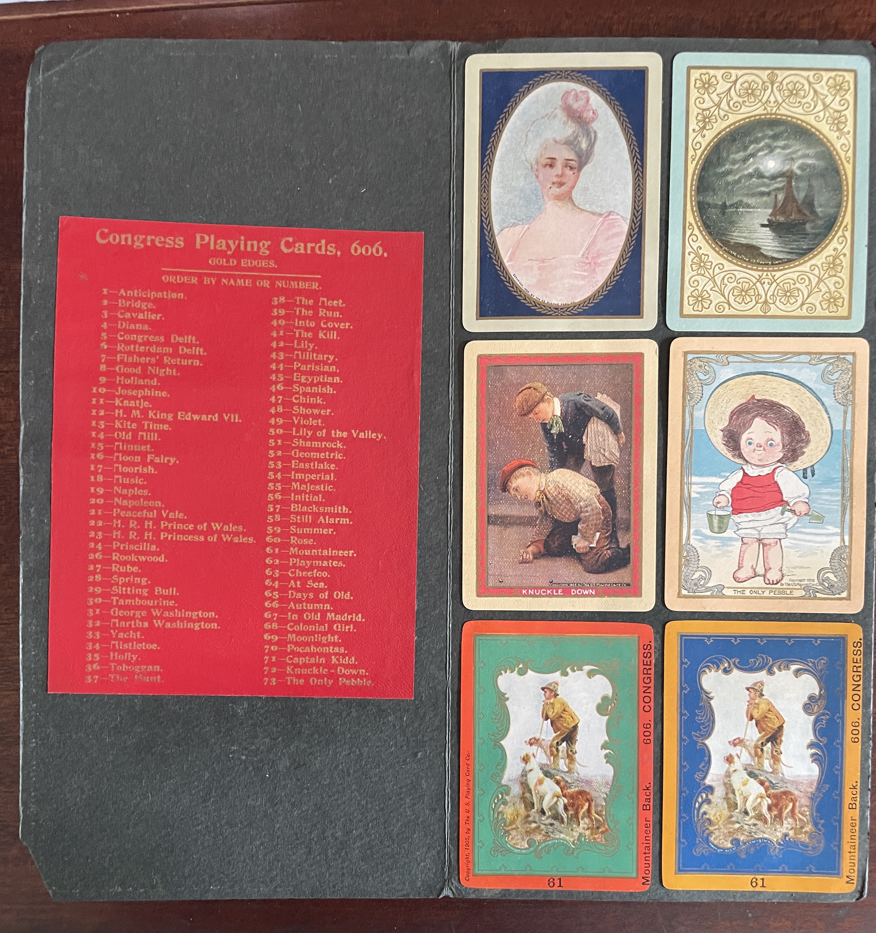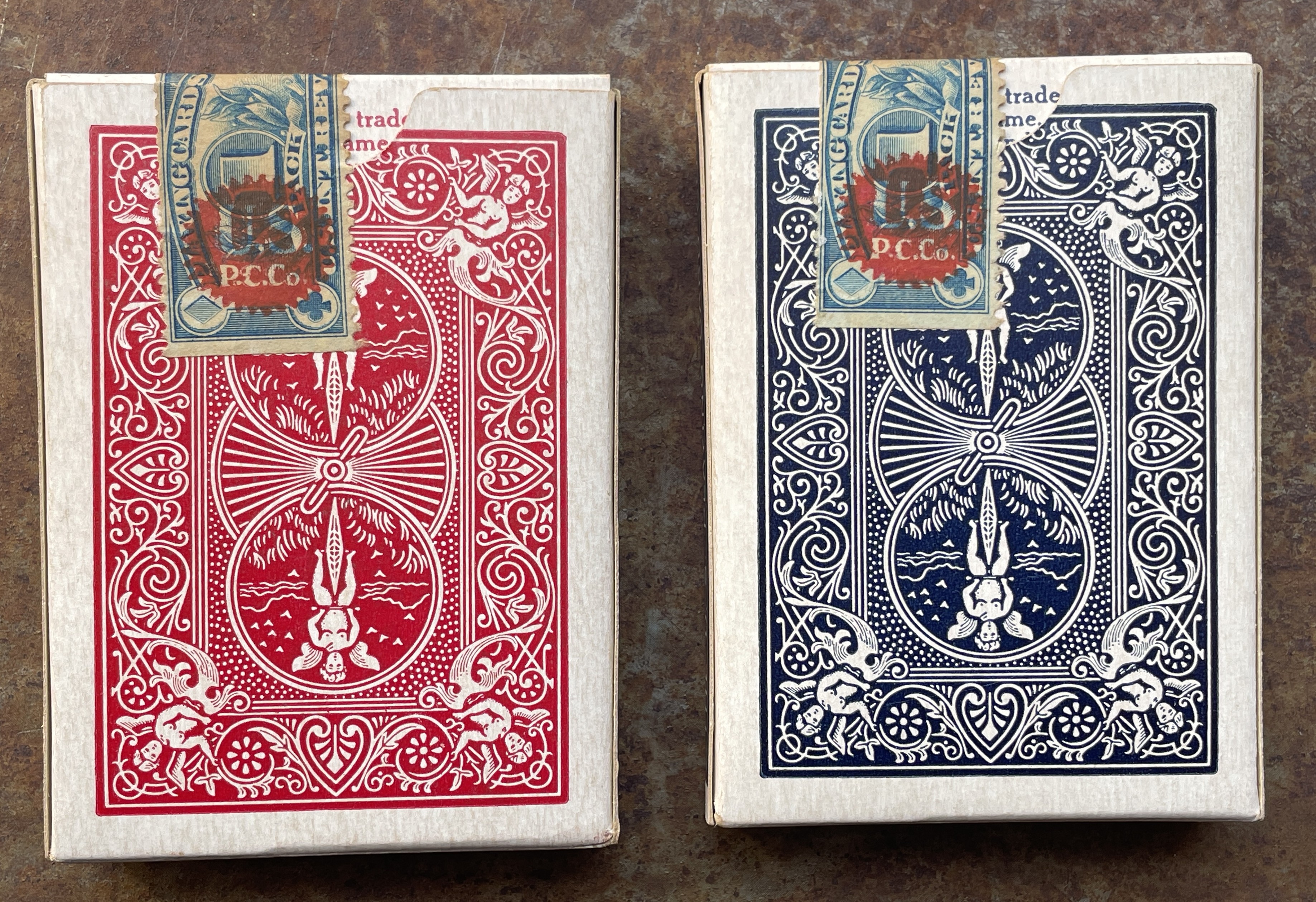 I have an affinity for these late 1920s two deck card boxes, so I’m sharing all the ones I’ve been able to acquire. Must have been popular for a while since all the major card makers were producing these.
