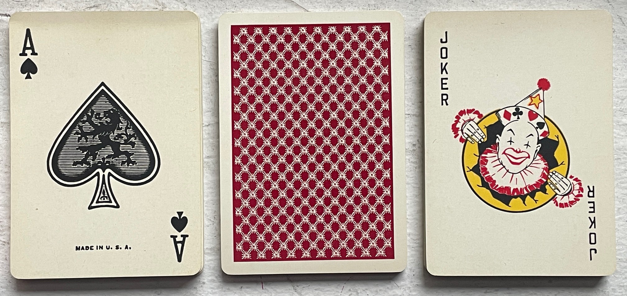 *** UPDATE, 1-14-2026. I found a USPCC deck using this same Ace of Spades in 1941, so likely after Gibson sold out to USPCC. The back design of the later USPCC was used for the wide Gibson Challenge deck, according to pics at the WWPCM. You can see the differences between the Gibson spade courts and the USPCC standard courts of the time.