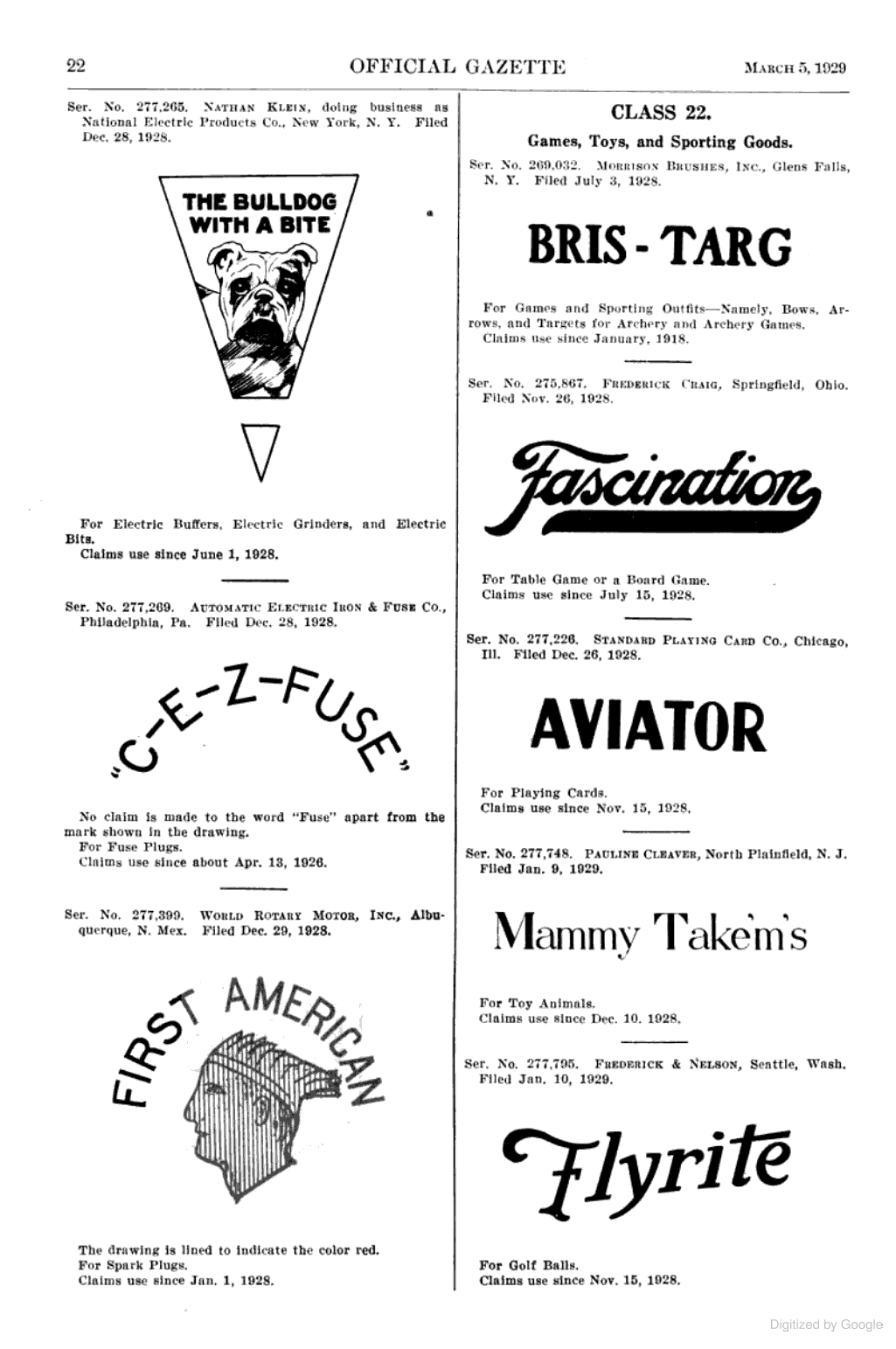 Sticking with Aviator for today's Ephemera Friday, I found that Standard Playing Card Co. registered the name "Aviator" for playing cards in 1928 according to the US Patent Office Gazette. May explain why the Western version of the Aviator deck (top left in previous post) is so hard to find these days. They did not have long to make it.
