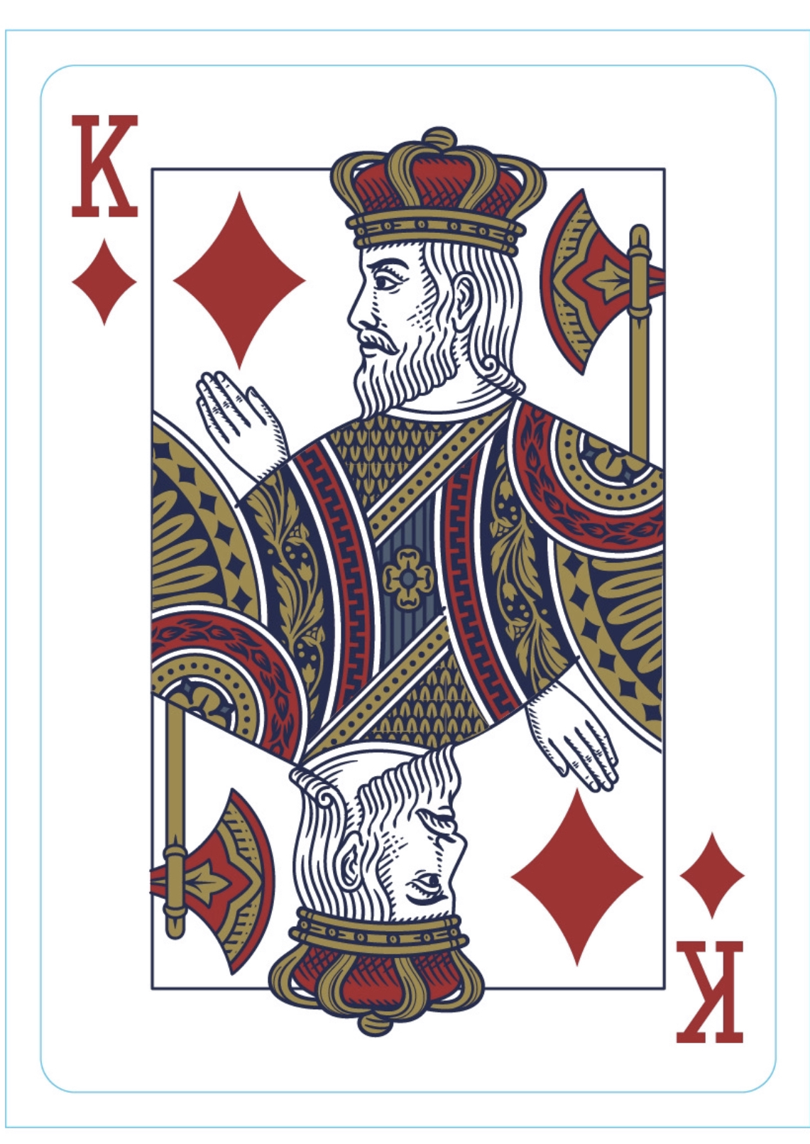 No. The design is actually intended to feel very standard. While still being custom. The idea for this was that this deck is intended to by wyrmwood’s flagship deck. One that will be akin to riderbwcks for bicycle. The cards will have metallic Pantones and one edition will feature cold foil. There are theee editions overall. A red and blue standard pair and a limited Luxury edition which may or may not be a KS exclusive. Still being determined.