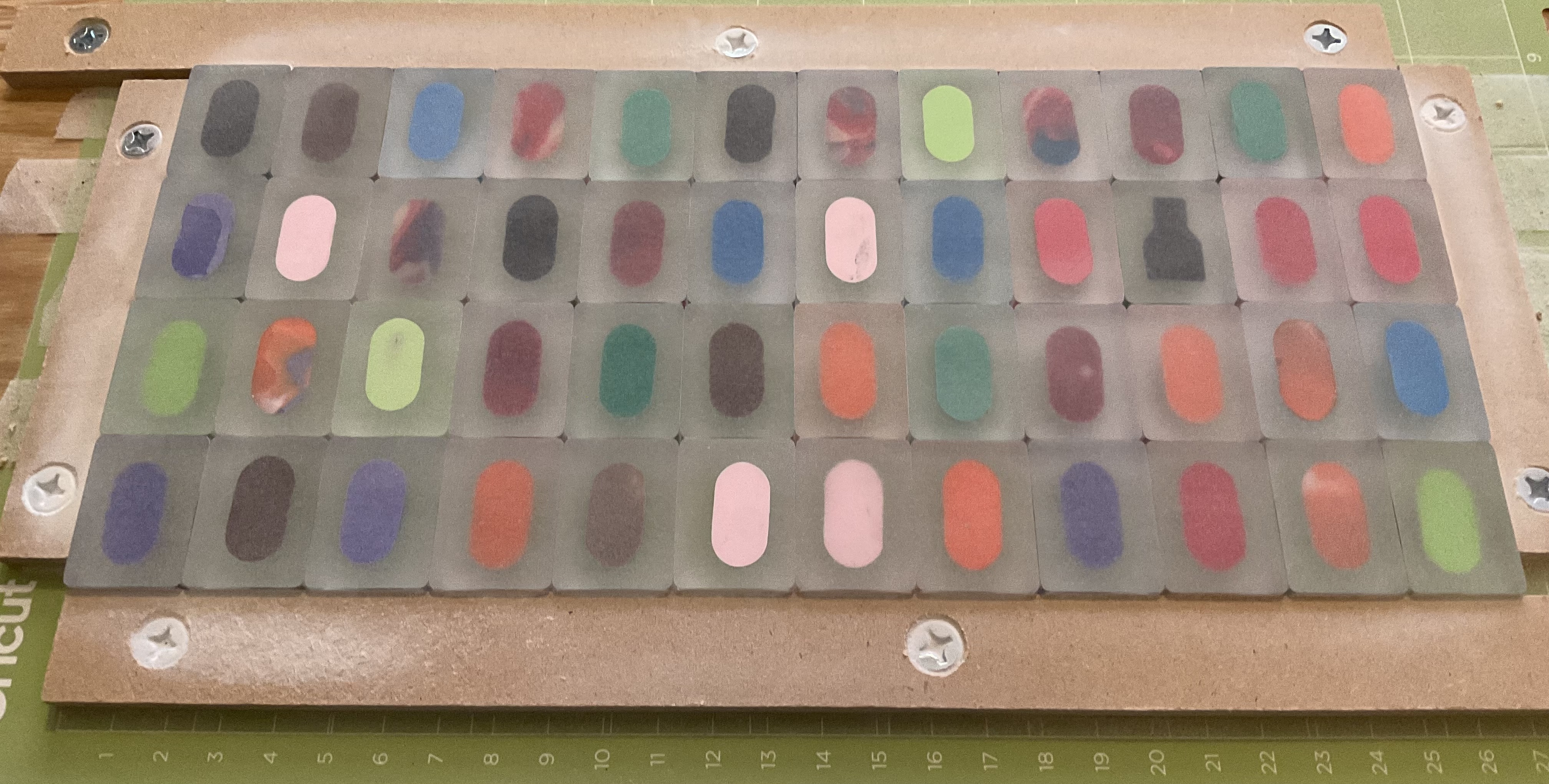 The molds each got the top clear layer of resin the other day, now a second layer of resin and the first layer of the cards